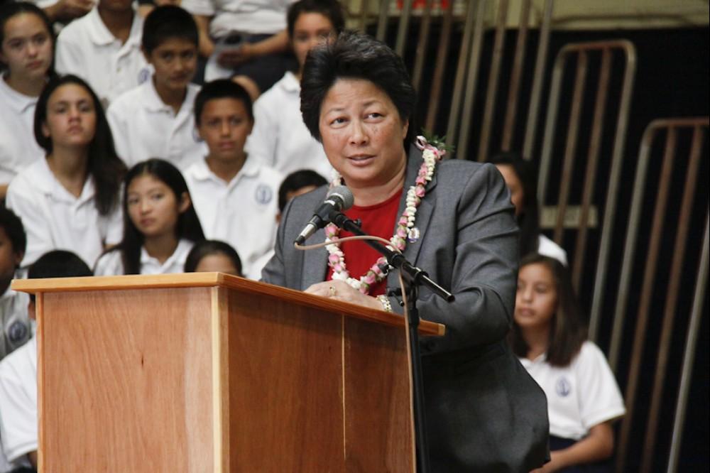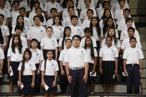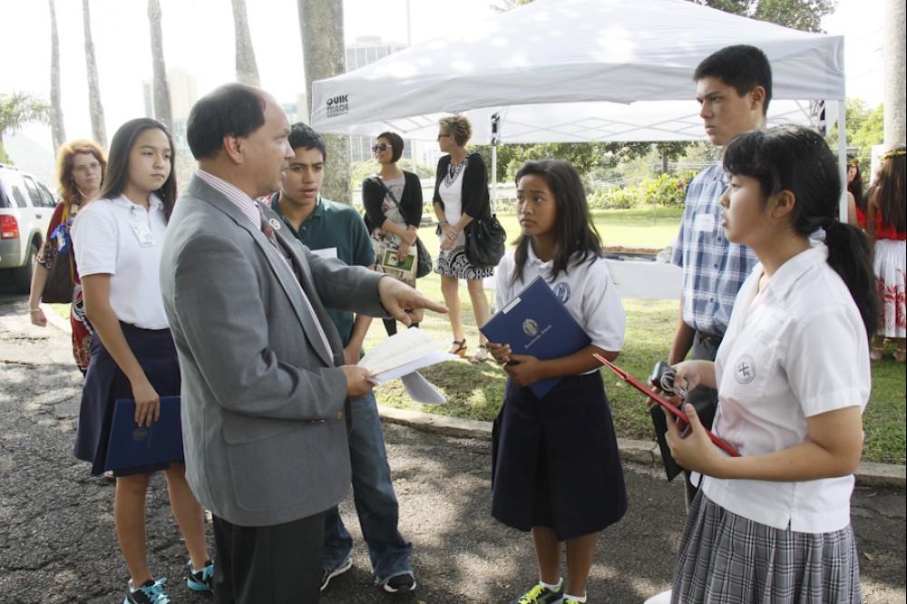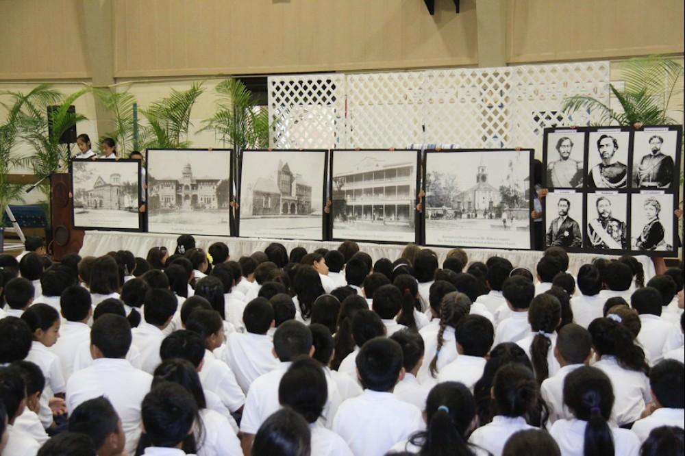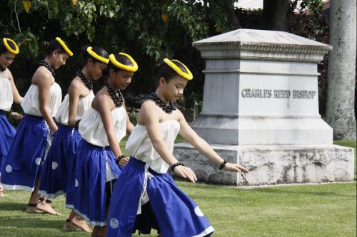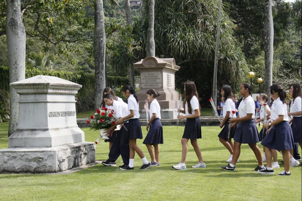 On January 25 Kamehameha Schools Kapālama's elementary and middle school students celebrated the birthday of Charles Reed Bishop, who co-founded Kamehameha Schools along with his wife Princess Bernice Pauahi Bishop. Former KS teacher Dr. Keiki Wawai'ae'a was the guest speaker at the elementary school program and KS trustee Janeen-Ann Olds spoke at the middle school's campus program and at Mauna 'Ala, the royal mausoleum, where representatives from all the institutions that benefited from Mr. Bishop's generosity were in attendence to honor him.