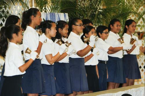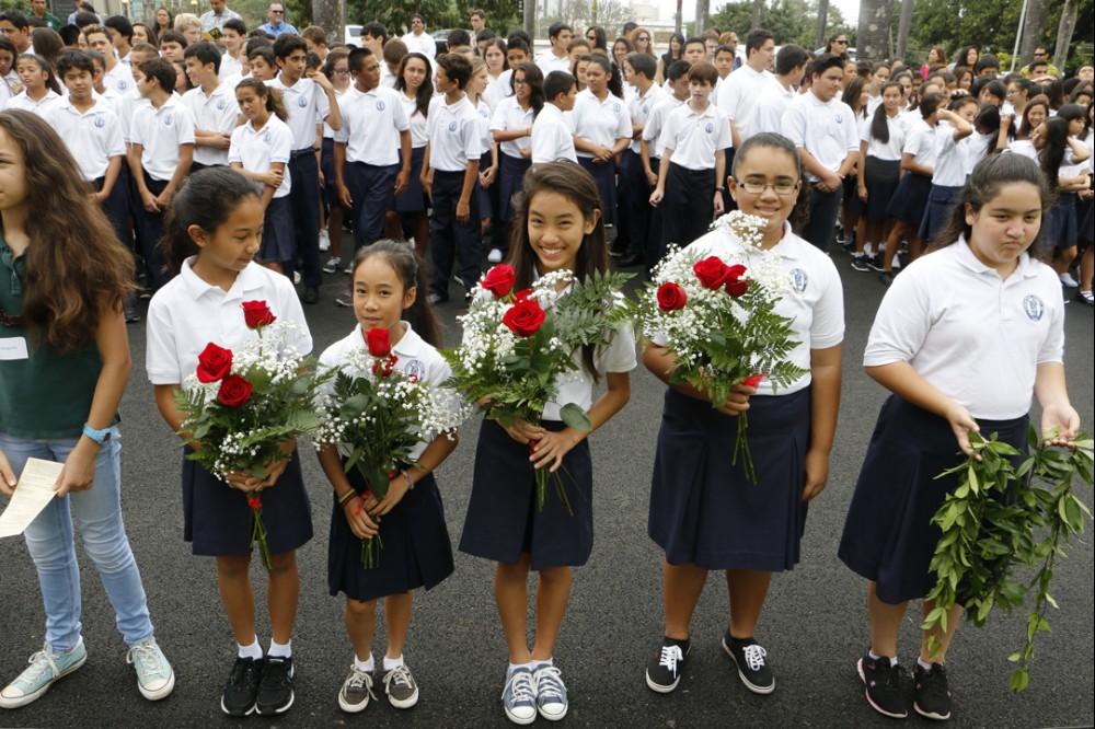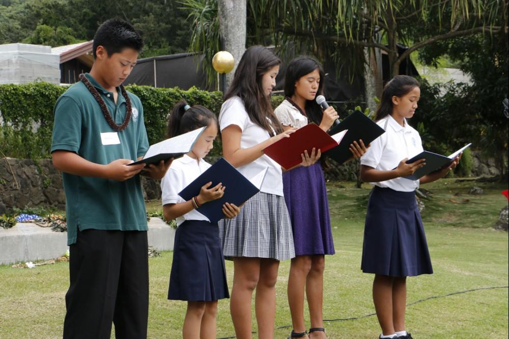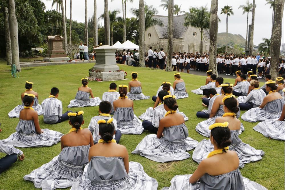Programs were held at the campus, and then the entire eighth grade class visited the Royal Mausoleum at Mauna ʻAla to pay their respects at Bishop’s grave site.
