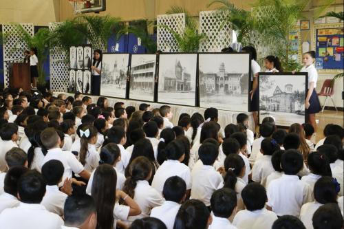 KS Kapālama elementary and middle school students recently celebrated the birthday of Charles Reed Bishop. Bishop, husband of Kamehameha Schools founder Bernice Pauahi Bishop, was the driving force that brought his wife’s wishes to fruition.