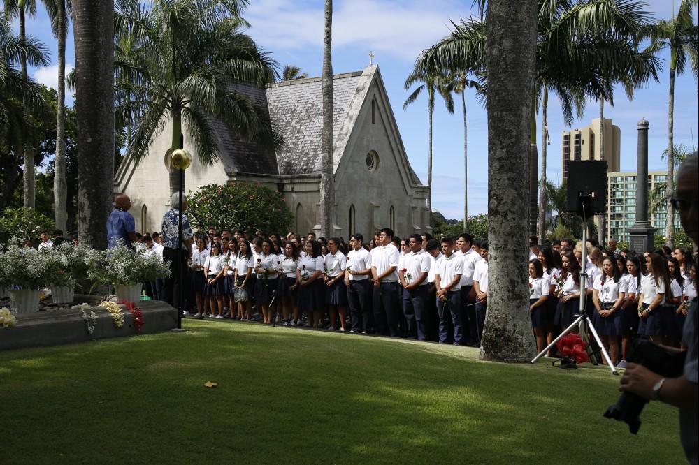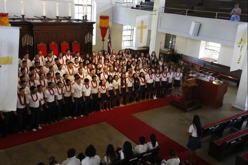 The busy week was a busy one. Seniors had one last community service project at Kula Hospital singing to the residents, they joined Kea'au seniors on O'ahu to pay their respects at Mauna Ala and had a joint worship service at Kawaihao church with Kapālama seniors attending also. Friday was Baccalaureate service and Headmaster Tea. Graduation was a tearful and happy event for the graduates and their families who joined them to celebrate their accomplishments.