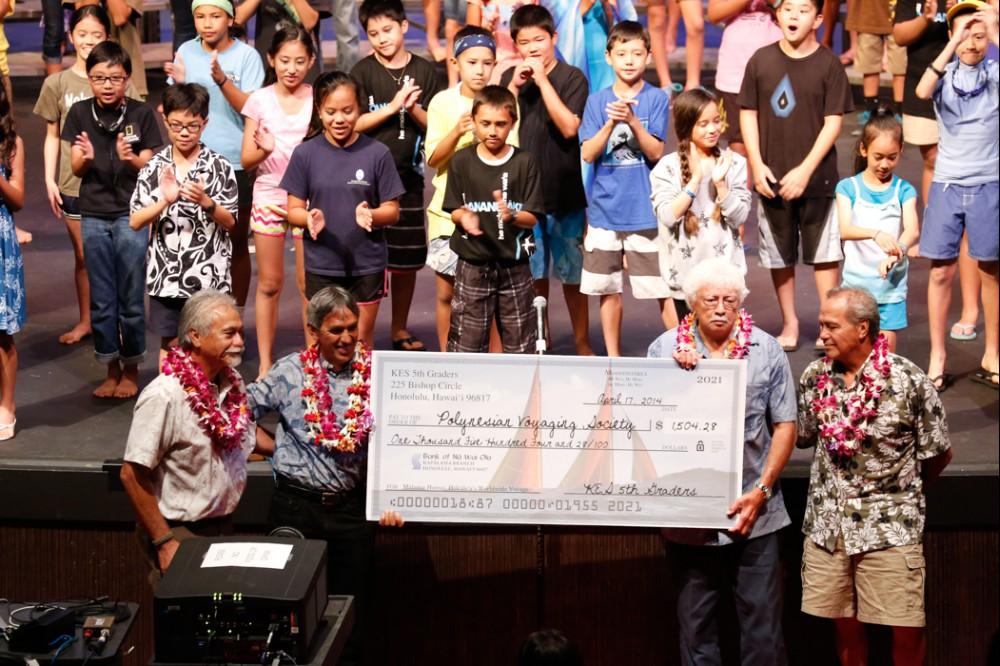 The Polynesian Voyaging Society built the voyaging canoe Hōkūle‘a to prove that ancient Hawaiians were skilled navigators who viewed the ocean as a pathway connecting islands and cultures. Fifth grade students studied and presented this incredible story of discovery in a play that combined research, writing, musical composition, costume design and performance skills. The play was performed for the elementary school, ohana and members of the Hōkūle‘a.