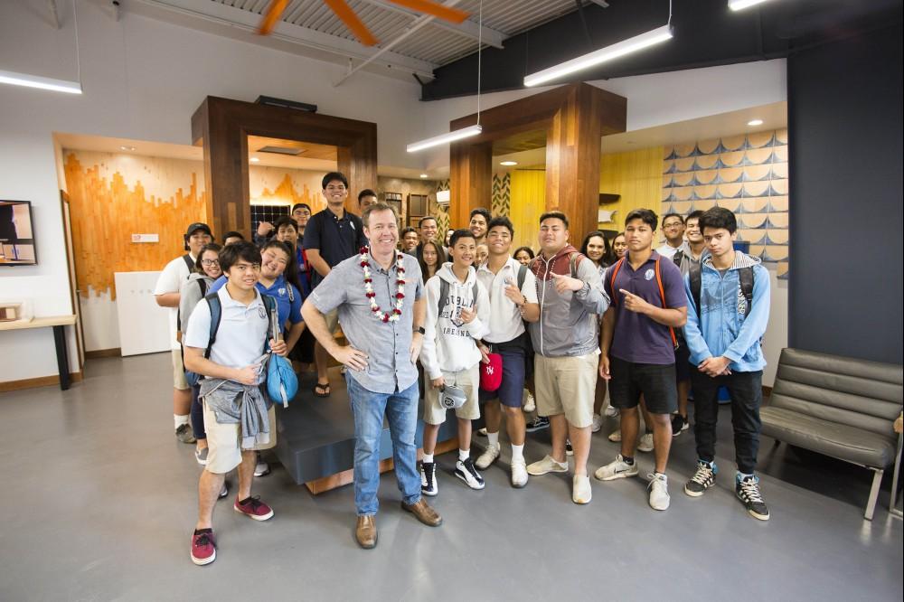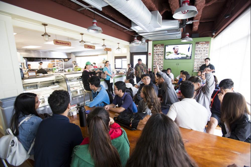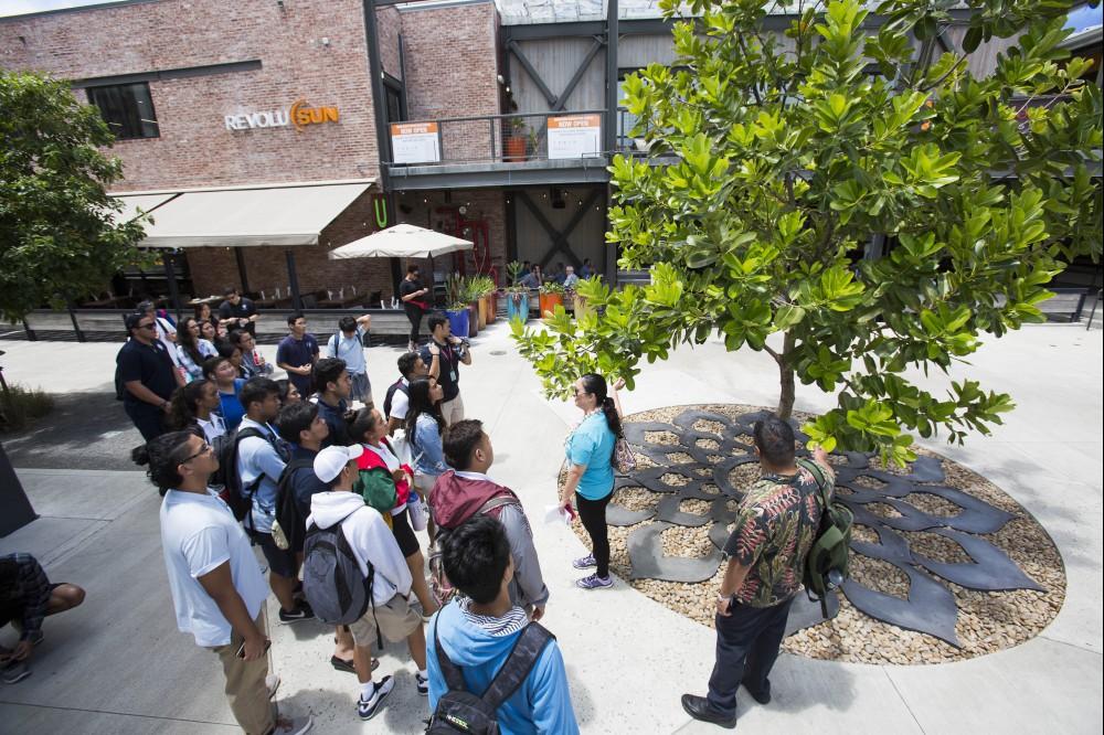 Kamehameha Schools Kapālama High School business class haumāna, led by kumu Sheryl Kashiwa, had the opportunity to experience a huakaʻi to Our Kakaʻako and SALT at Our Kakaʻako last week. The day included listening to various speakers share their manaʻo about innovation, entrepreneurship and what it takes to be a business owner in today’s world. Guest speakers included Monica Toguchi from Highway Inn, Colin Yost from RevoluSun, Peter and Debbie Anderson from Morning Brew and KS Senior Planning and Development Manager Bob Oda.