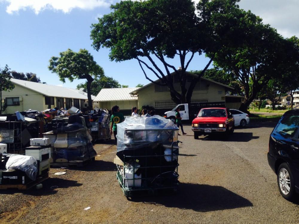 A hardworking group of eco-conscious legislators and other volunteers recently rolled up their sleeves to take part in the Going Green event in Mōʻiliʻili. The annual effort involves mobilizing teams of volunteers to gather recyclable furniture and fixtures from state agencies and area residents and sell the recyclable scrap metal. The proceeds from the sale go toward community events and organizations including the Mōʻiliʻili Community Center.