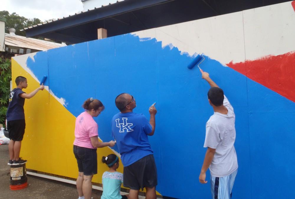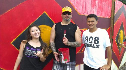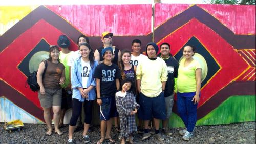 The mural illustrates Haleʻiwa’s history of people, culture, agriculture, fishponds, ocean, and the ʻiwa bird. Five experienced mural artists including KSK visual arts teacher Carl Pao, worked with community members over a course of two weeks to complete the project. Pao describes the mural as follows: