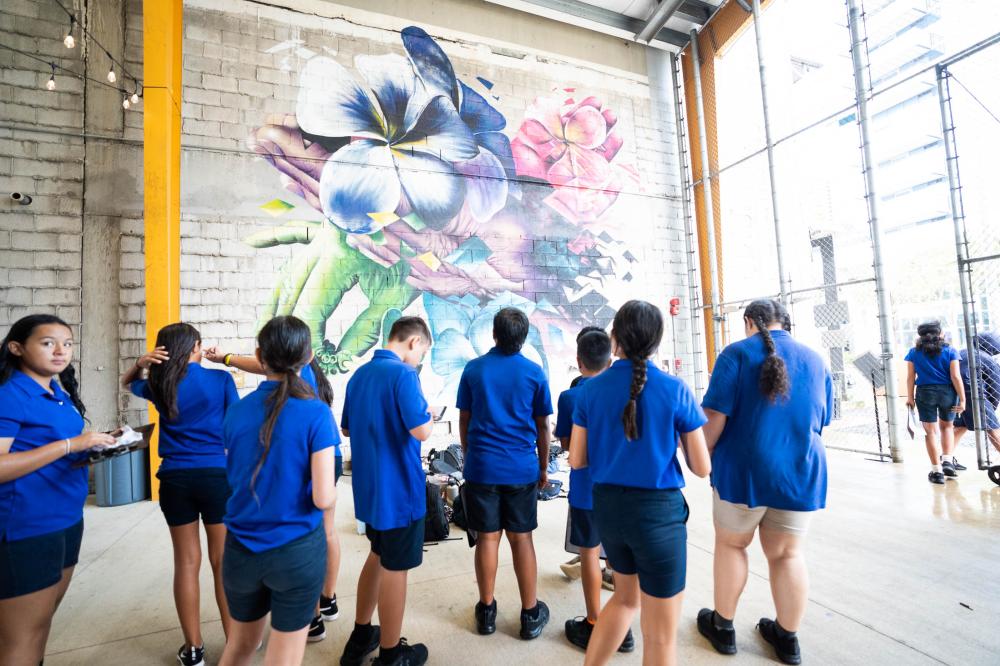 The huakaʻi also included numerous educational activities. Haumāna learned about the history of the area, the shopping center, and the vibrant art murals located throughout the neighborhood. The day concluded with a homemade ham sandwich and pickle slices from Butcher & Bird.