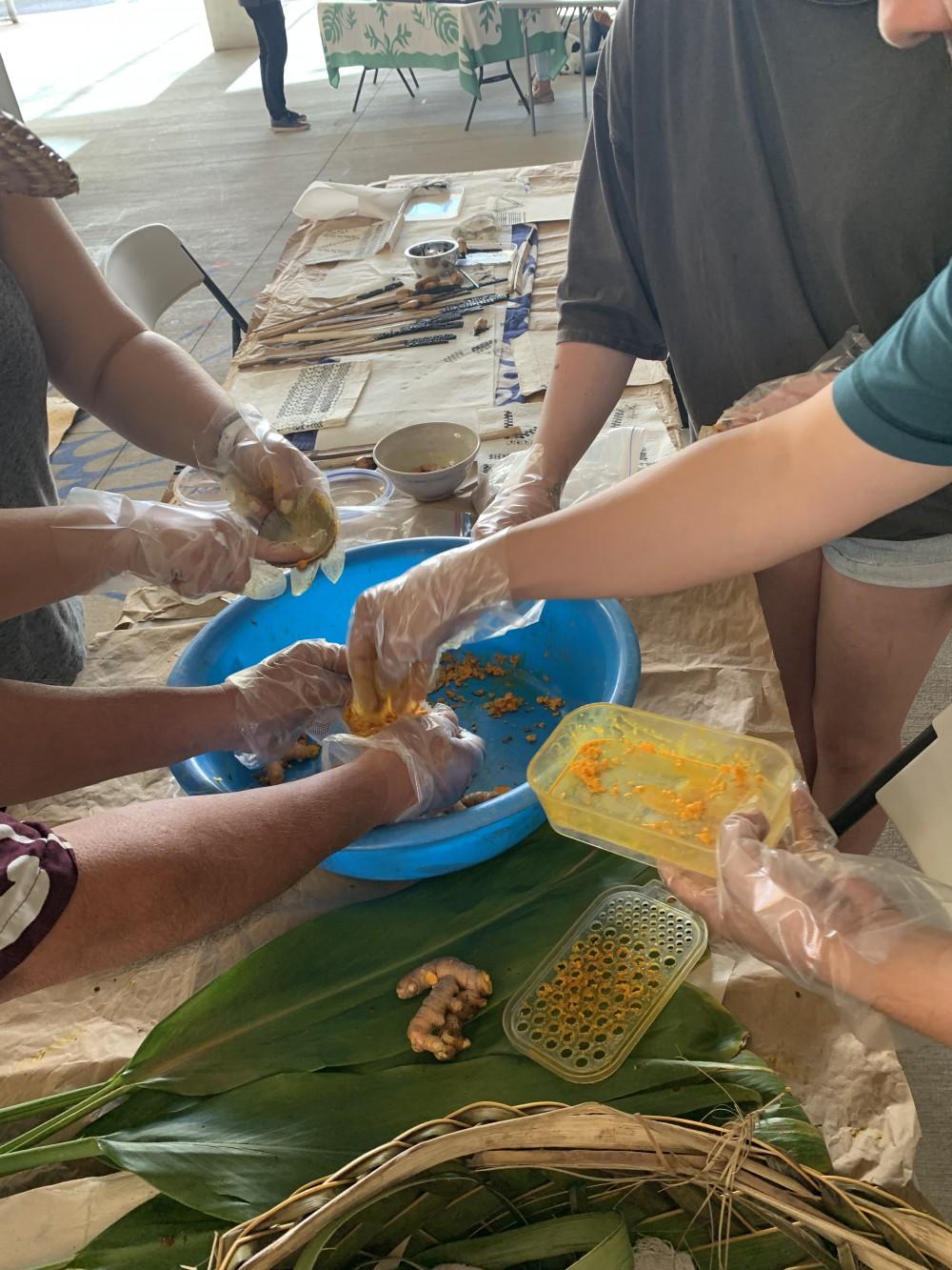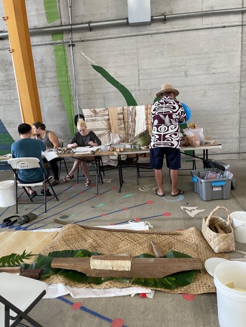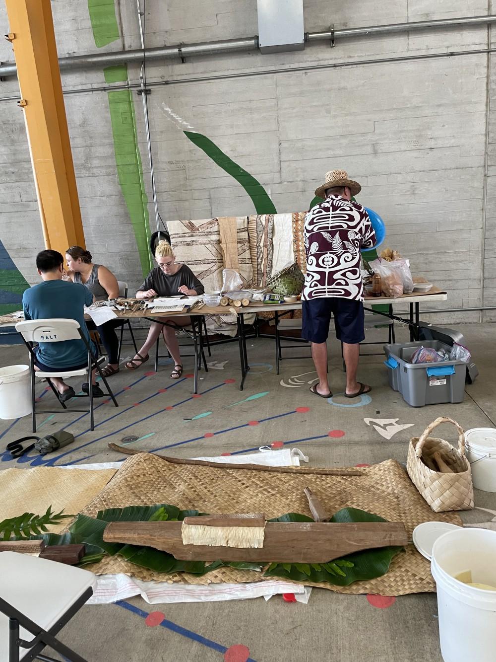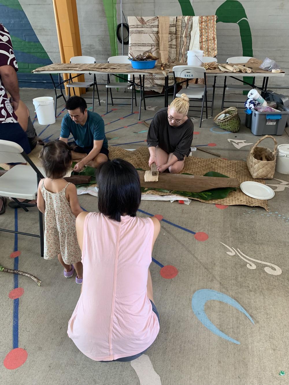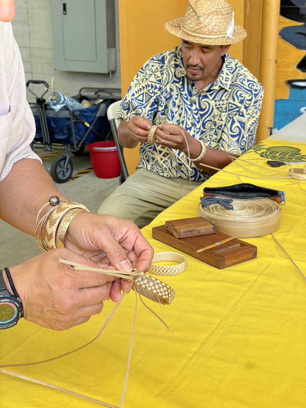 Culture, the sharing of manaʻo, community engagement and entrepreneurship were alive and well recently in Our Kakaʻako as the Kaiāulu ‘o Kaka‘ako Owners Association hosted a series of four intimate workshops in which participants learned how to make traditional crafts under the direction of local Native Hawaiian artisans. The Hawaiian Crafts Workshop & Sale, which took place in Decemebr at The Barn at SALT, included demonstrations of kapa making by Dalani Tanahy, ʻohe kāpala (carved stamps for kapa) by Nalu Andrade, lauhala bracelet weaving by Mahina and Cheryl Pukahi, and cord braiding by ‘Umi Kai