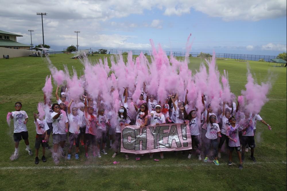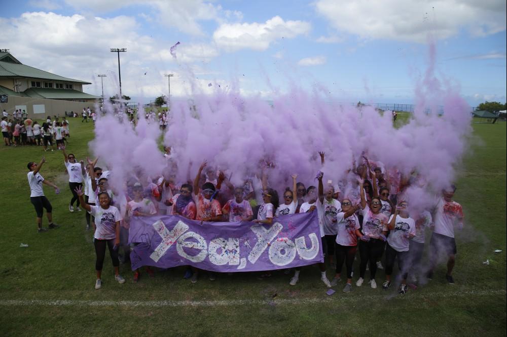 Homecoming 2016 culminated with the first school wide Color Run in the state. The high school students went to class for part of the day, participated in an evacuation drill to the stadium, then participated in a day full of events that began with the Color Run. Four color stations were set up and teacher tossed pink, green, purple and red powder as the students ran by. The Run ended in the practice field and the students enjoyed music, yard games, had lunch and were entertained by KSM alumni from various years.