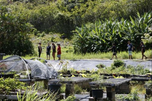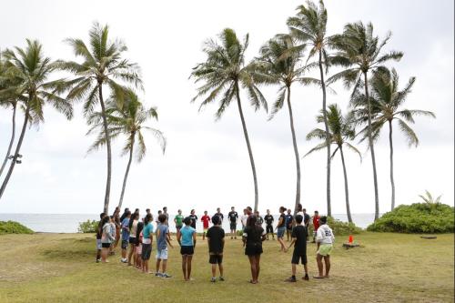 Students enrolled in the Hoʻolauna Koʻolauloa, Oʻahu program learned about the area that encompasses the largest ahupuaʻa (mountain-to-sea land division) on the island. From their base at a KS-owned beach house in Punaluʻu, the students took a bus tour of the area, visited farmers in Kahana Valley and learned about aquaponics at Keanuenue Farms.