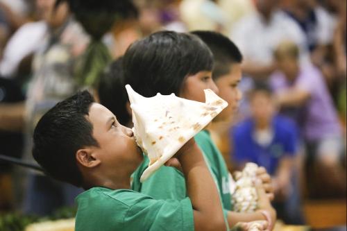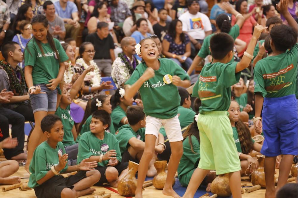 KS’ Hoʻomakaʻikaʻi summer program recently culminated with a hōʻike at Kekūhaupiʻo Gym at the KS Kapālama campus. Students showed their ʻohana what they learned about Hawaiian culture during the week through songs and dances.