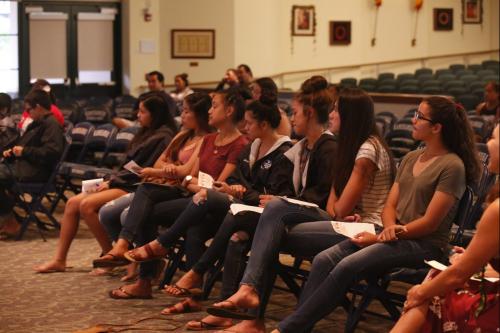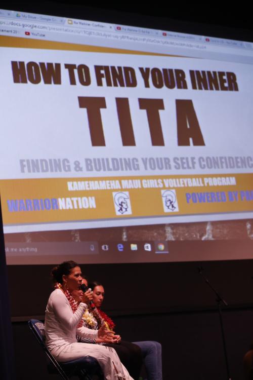 The Girls volleyball team and others gathered in Keōpūolani Hale on September 10th to listen to six strong, confident wahine in their fields speak about how they were able to find their sense of self and share with the girls strategies for them to build their own sense of self.