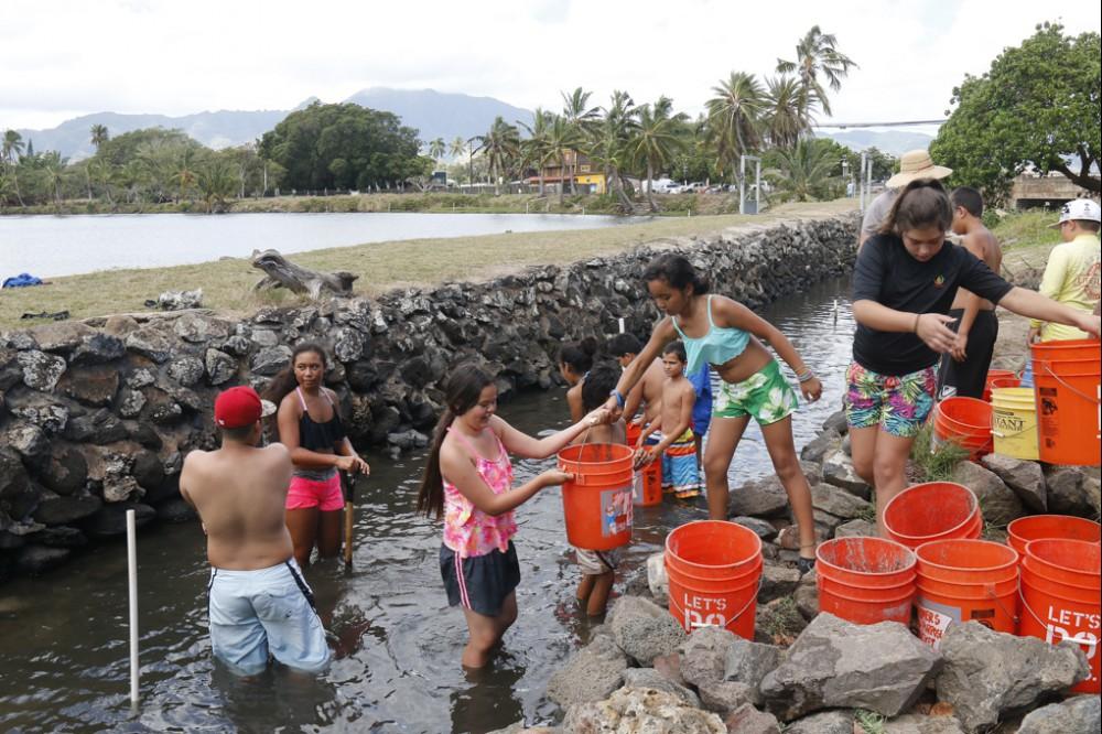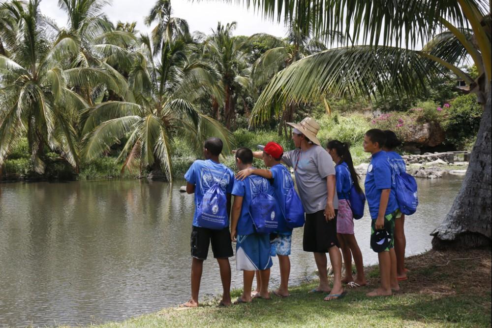 Students in Kamehameha’s Hoʻomākaʻikaʻi summer program recently spent a day in Oʻahu’s North Shore community of Haleʻiwa where KS owns Loko Ea, an ancient Hawaiian fishpond.