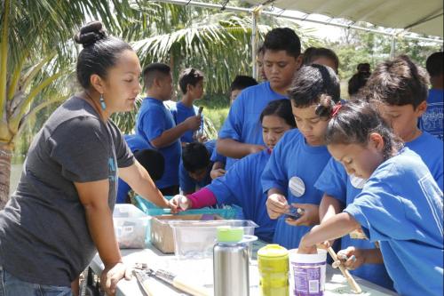 Haumāna engaged in several activities to learn about Hawaiian fish farming, how to maintain a healthy fishpond, and how to make a fish cleaning tool. Student also had fun swimming in the ocean and paddling a canoe at nearby Aliʻi Beach.