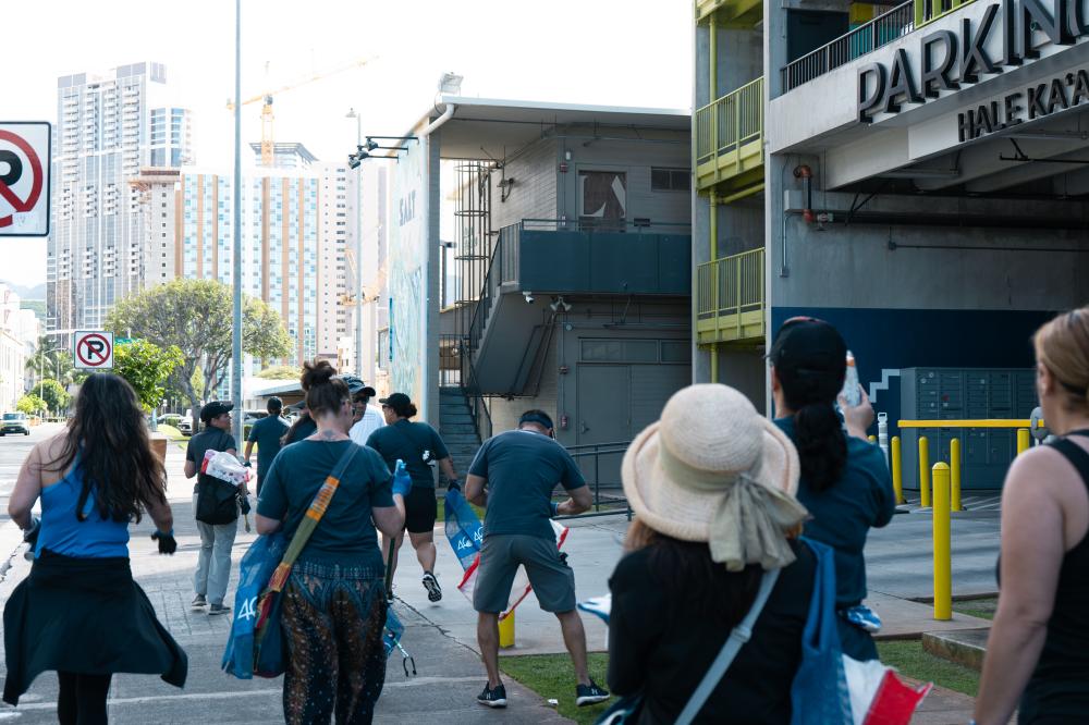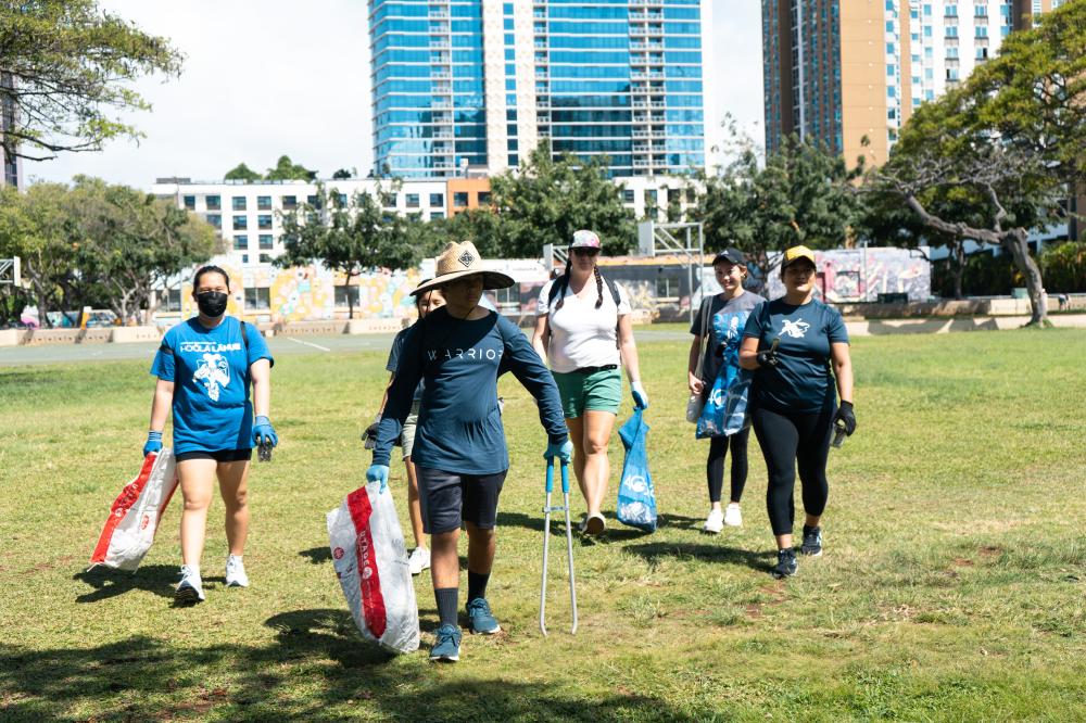 More than 180 volunteers collected 455 pounds of ʻopala at the Mālama ʻĀina Community Cleanup hosted by Our Kakaʻako. The event coincided with Earth Month. The volunteers included dozens of Kamehameha Schools Kapālama residential life haumāna. Before fanning across Kakaʻako to track down rubbish, volunteers received a safety briefing at the Barn at SALT. Kamehameha Schools Partners included Kaiāulu ʻo Kakaʻako Owners Association, Surfrider Foundation, One Waterfront Plaza and Bottles4College. A similar event happens on Earth Day, Saturday, April 22nd, at Kapālama Kai.