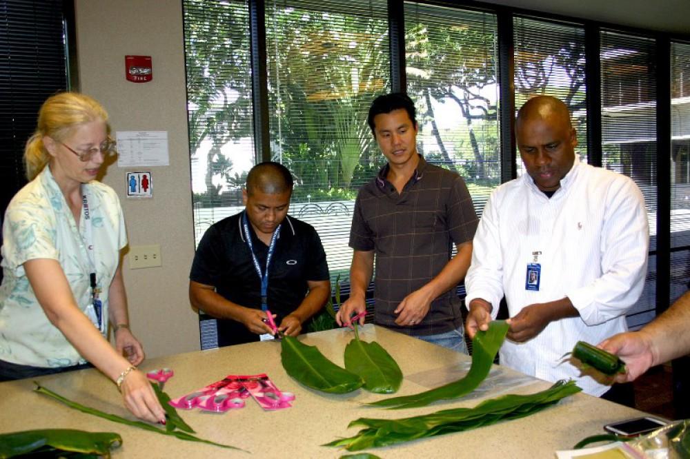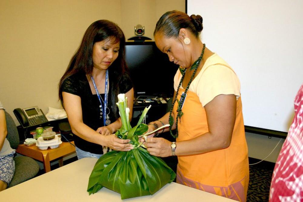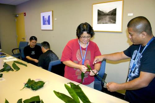 The Information Technology Operations staff recently took part in a team-building week with a focus on Hawaiian culture. Cultural specialists Hauʻoli Akaka and Kehau Pea from KS’ Ho‘okahua Hawaiian Cultural Vibrancy Group helped acquaint the techies with Hawaiian history, traditions and skills.