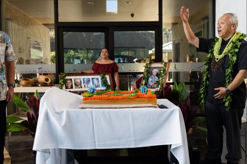 After years of planning, perseverance, and dedication, Myron “Pinky” Thompson’s dream for a gathering place of cultural learning and healing, inspired by a connection across Moananuiākea, became a reality on September 26, 2012 with the opening of the Kaʻiwakīloumoku Hawaiian Cultural Center. Over the past decade Kaʻiwakīloumoku has welcomed thousands of keiki, kumu, mākua, and kupuna, not only from our own lāhui Hawaiʻi but from around Moananuiākea. Members of the community and KS ‘ohana gathered on the 10th anniversary of the center’s opening to celebrate this wonderful place and Uncle Pinky’s incredible vision. Mahalo to KS Senior Multimedia Specialist Jacob Chinn for capturing these special memories.