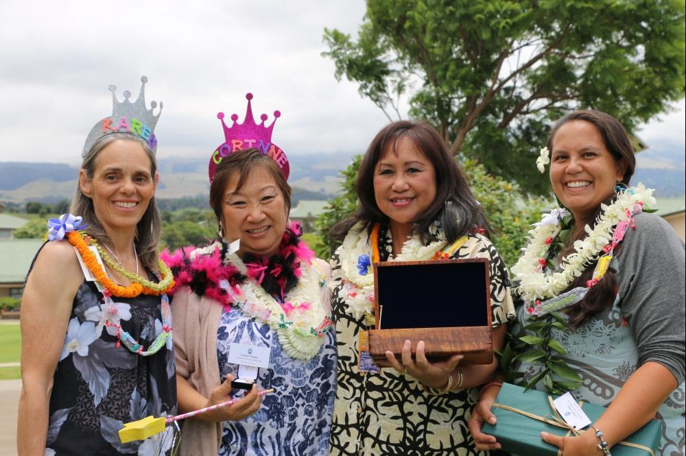 The service awards ceremony was emceed by the Hawaiian Protocol Facilitaor Ekela Kaniaupiʻo-Crozier and was followed by a luncheon hosted by Head of School Lee Ann DeLima. Lunchtime entertainment was provided by KSM Staff Serenaders Kanani Franco, Kalei Aarona-Lorenzo, Dale Nitta, Mamo Nitta, Clark Tuitele, Dane Fujiwara, Kamuela Binkie and hula dancer Henohea Kane.
