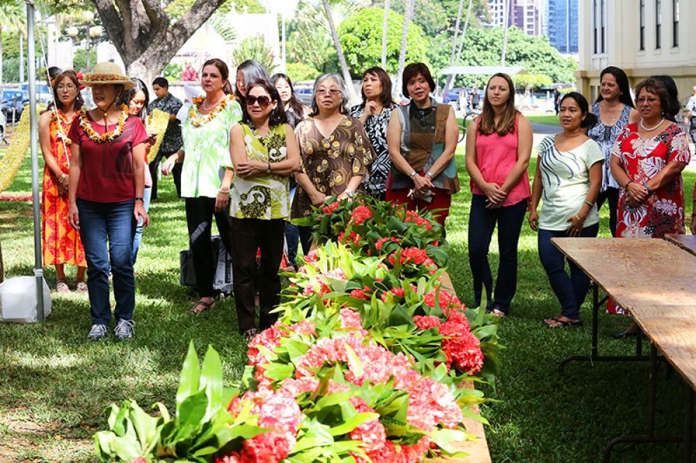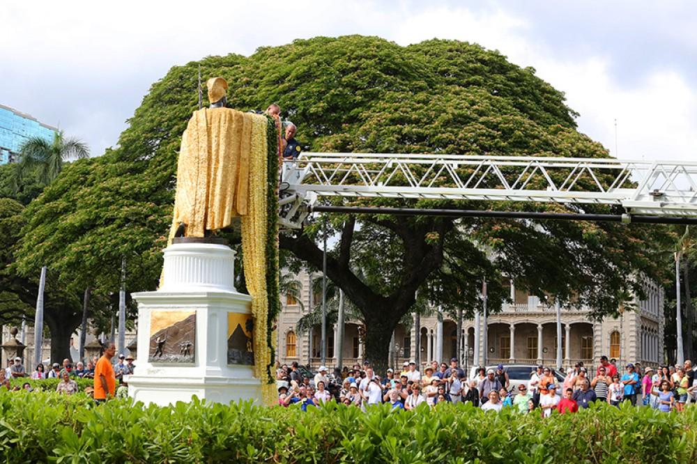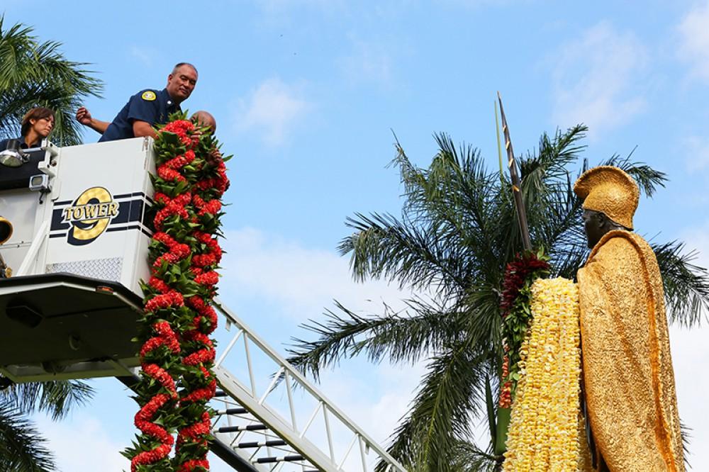 Many hands of the KS employee ‘ohana helped craft a 20-foot lei to adorn the King Kamehameha statue at Honolulu’s Ali‘iōlani Hale. The lei-draping ceremony was part of last week’s King Kamehameha Celebration.