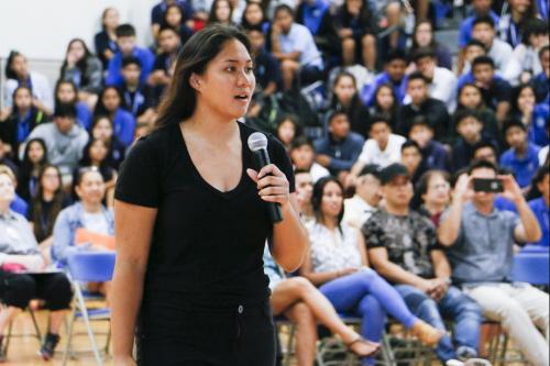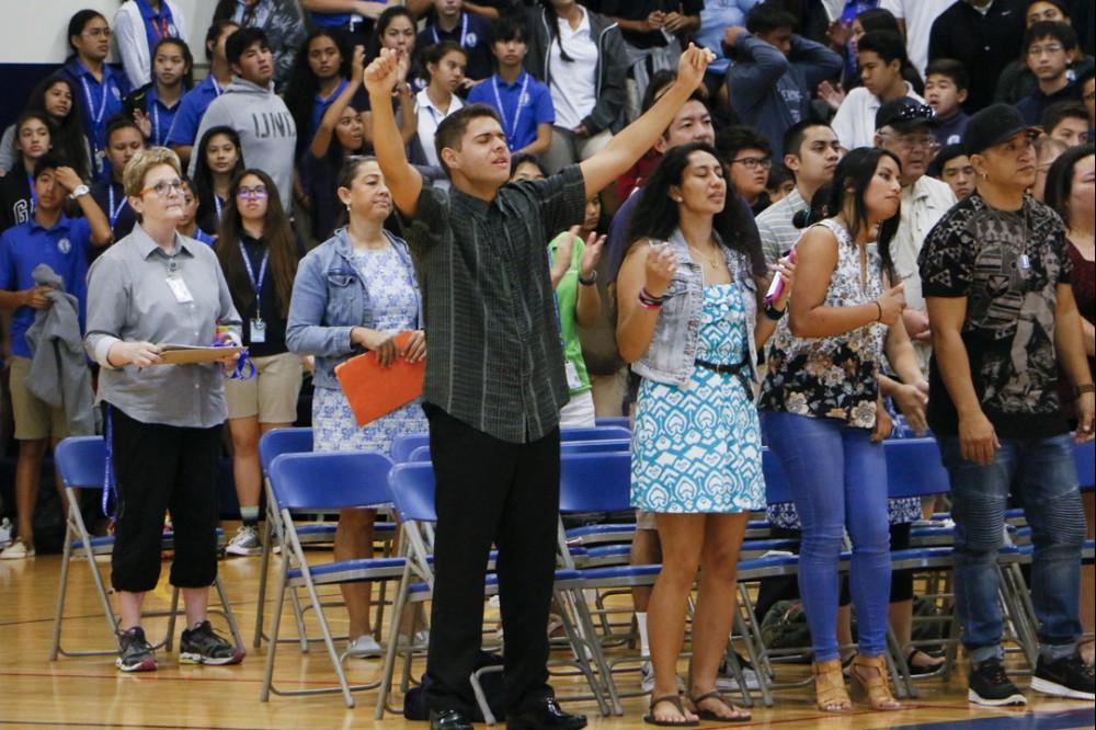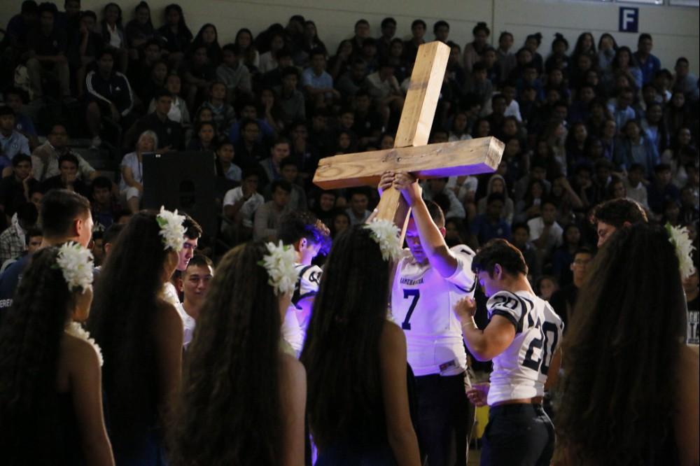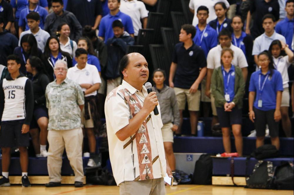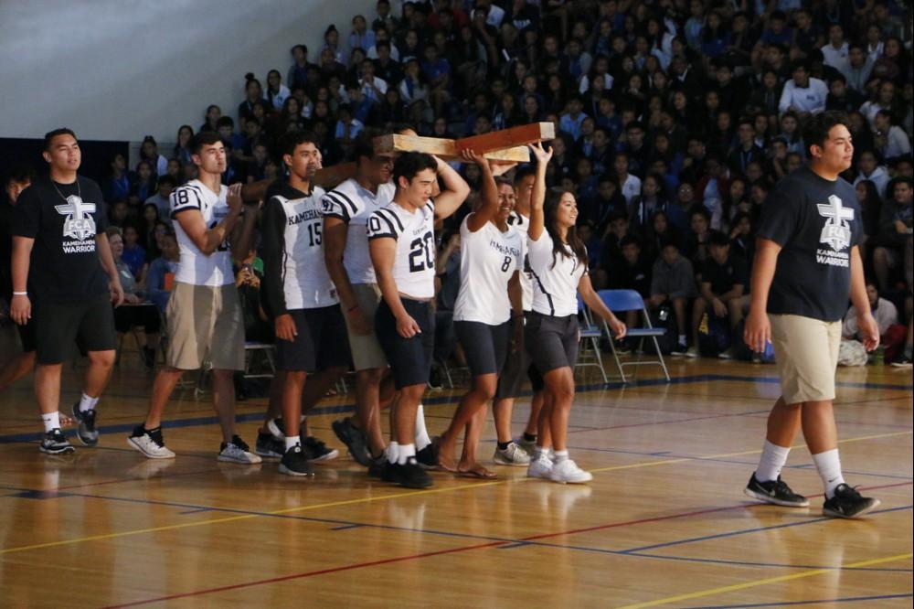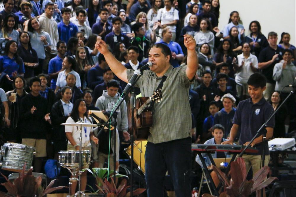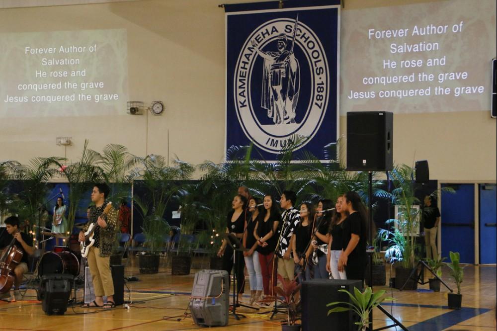 The miracle of Easter was celebrated at a powerful assembly at Kekūhaupi‘o Gym where the Hawaiian culture was blended with the Christian faith. Students honored the sacrifice of Jesus with mele and hula. And guest speaker Pastor Joe Onosai spoke to the students and staff about filling the emptiness in their lives with the love of God.