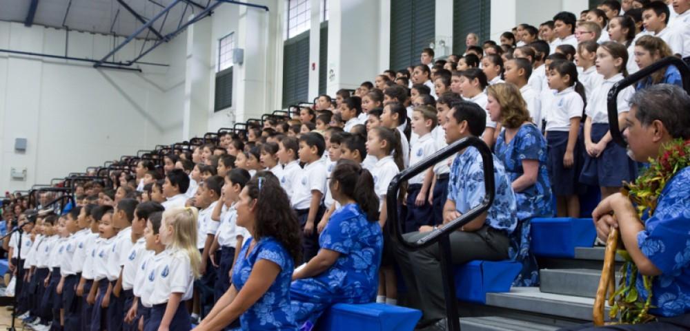 More than 1,300 Kamehameha Schools Hawaiʻi faculty, staff members and students raised their voices in song and praise at their annual Founder’s Day celebration at Koaiʻa Gymnasium. The December 19 event honored the life and legacy of Ke Aliʻi Bernice Pauahi Bishop.