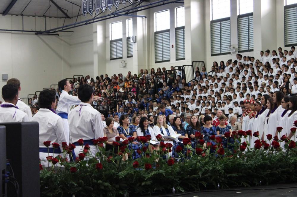 More than 1,300 Kamehameha Schools Hawaiʻi faculty, staff members and students raised their voices in song and praise at their annual Founder’s Day celebration at Koaiʻa Gymnasium. The December 19 event honored the life and legacy of Ke Aliʻi Bernice Pauahi Bishop.