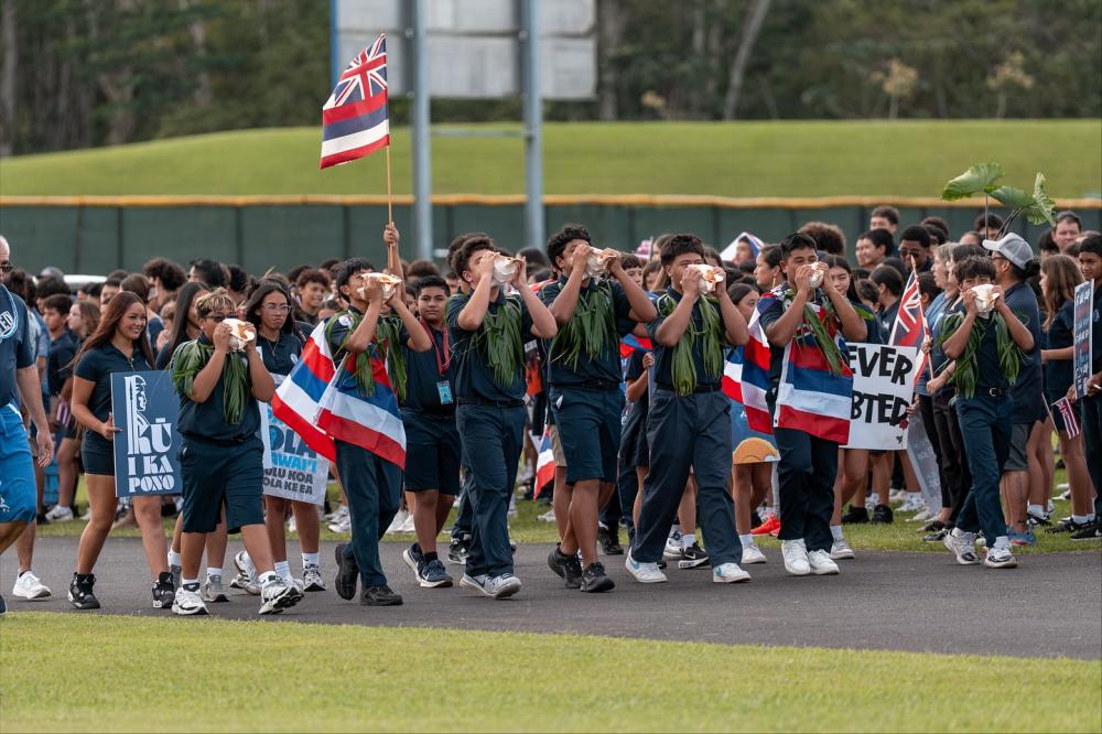 With powerful mele and hula, Ke Kula ʻo Kamehameha Hawaiʻi unified to honor Ke Aliʻi Pauahi’s legacy and her vision to uplift the lāhui through education. Pauahi recognized education as the path for her people to not only survive but thrive. On campuses across the pae ʻāina, they carry forward her vision by preparing these emerging ʻōiwi leaders for the generations to come.
