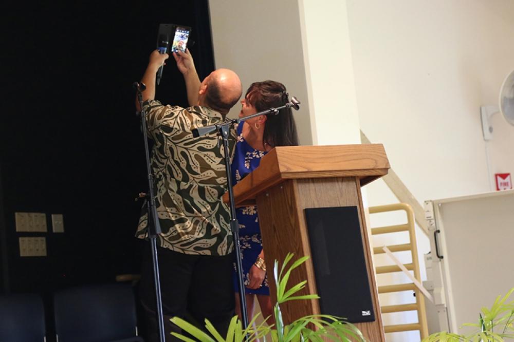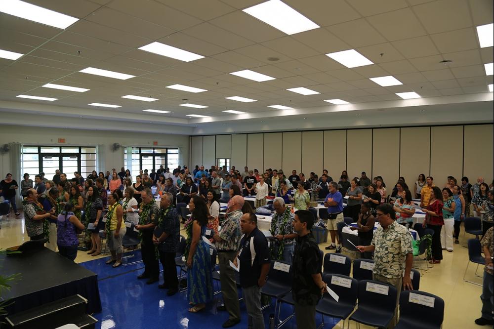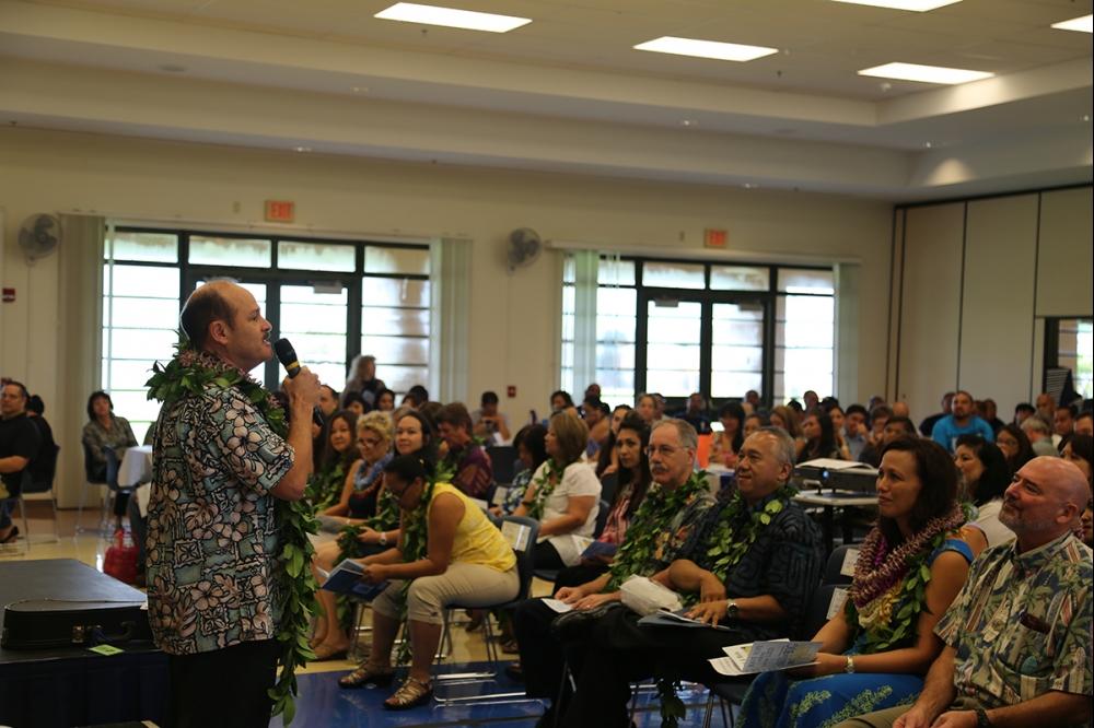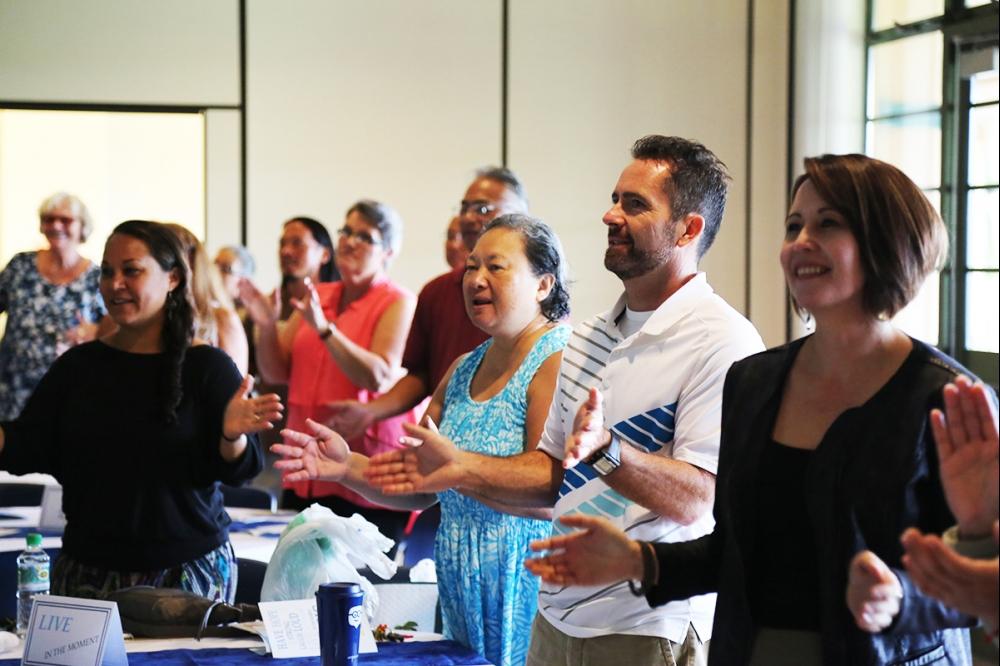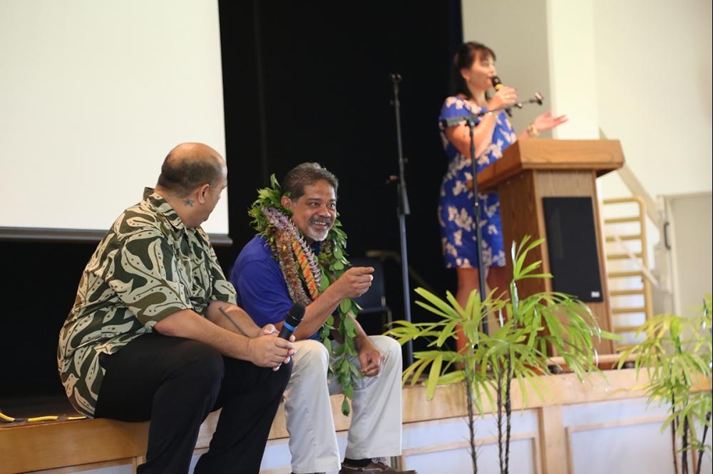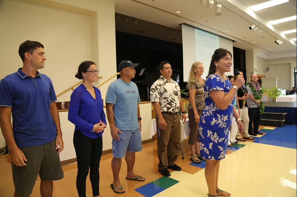 New staff members over the past year were welcomed to the KS ‘ohana with oli and mele. Event emcees Admissions Manager Lisanne Kekuewa and high school Principal Lehua Veincent had everyone laughing with big smiles on their faces.