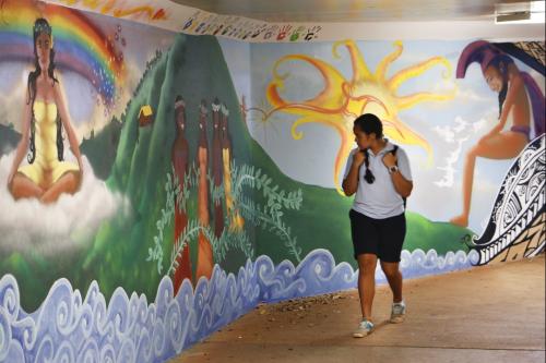 The KS Kapālama students in kumu Ryan Oishi's English 10 class painted a beautiful mural in the underground tunnel that connects the Pākī building with Bishop Hall.
