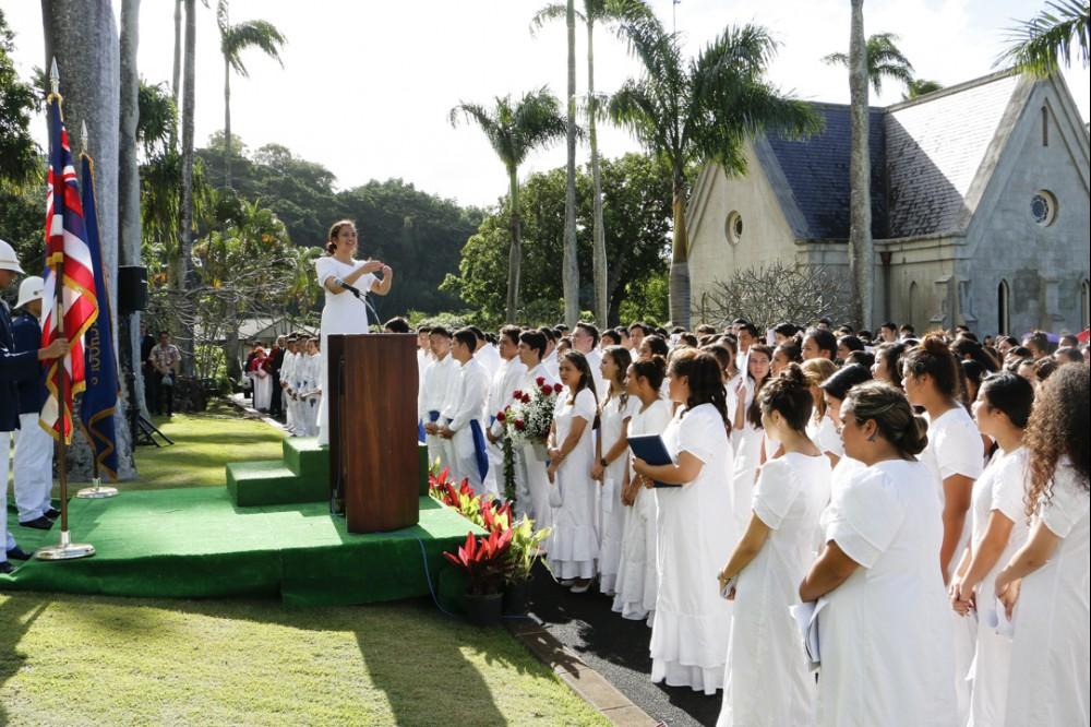 The Kamehameha Schools Kapālama ʻohana – including over 3,100 students and 600 staffers – gathered at Kekūhaupi‘o Gymnasium December 19, to celebrate the life of Ke Aliʻi Bernice Pauahi Bishop. After the Founder’s Day service, Kapālama seniors paid homage to the Princess at the Royal Mausoleum at Mauna ʻAla, her final resting place.
