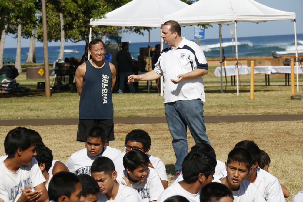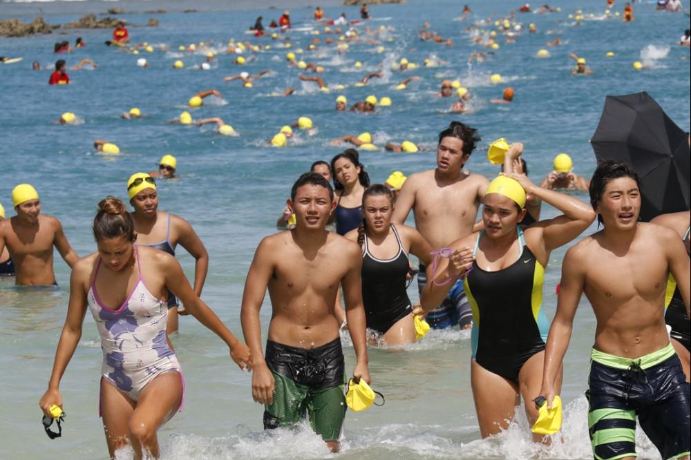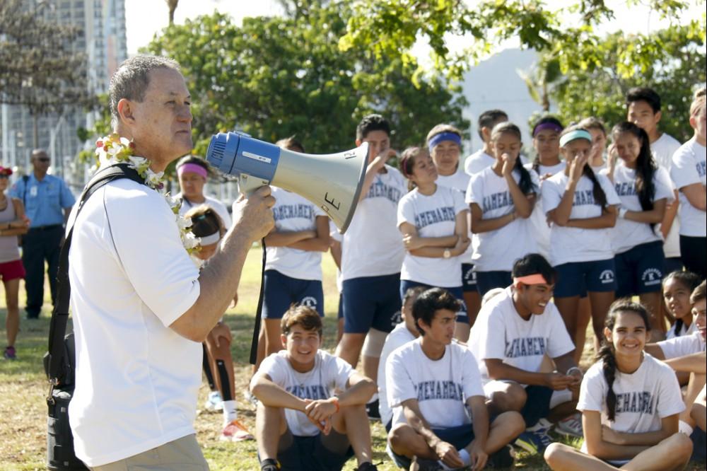 The PE event took place under sunny skies at Ala Moana Beach Park with dozens of ʻohana and teachers on hand to cheer on the students as they pushed themselves to complete the course.