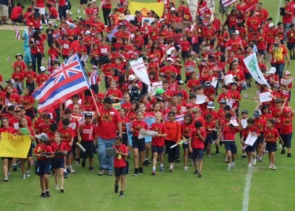 In keeping with tradition, Kamehameha Schools Maui celebrated its Pō‘alima ‘Ula‘ula (Red Friday) on October 23. The first Pō‘alima ‘Ula‘ula took place in 2005 as the verdict for the Doe vs. Kamehameha Schools decision was being awaited. Now occurring twice a year, the event helps KS Maui students, faculty and staff members connect with the Native Hawaiian community and show unity in all things Hawaiian.