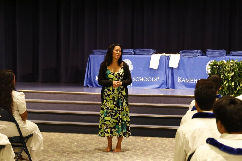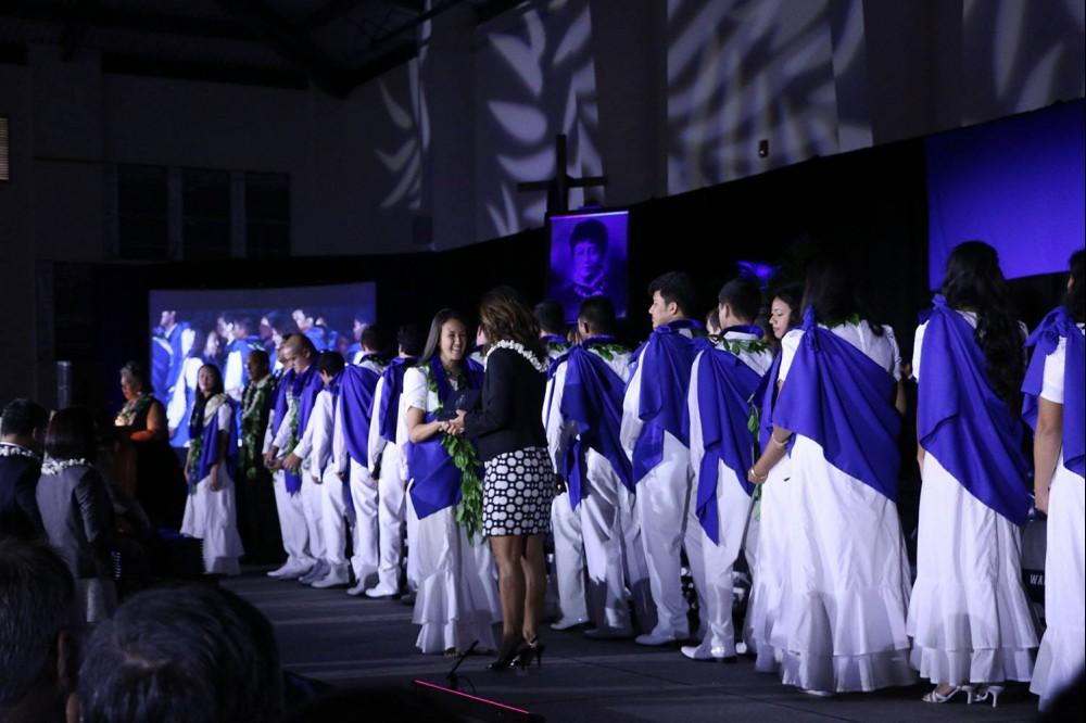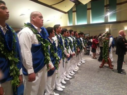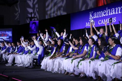Prior to the commencement ceremonies on Saturday, May 23, the ʻAha Hōʻaʻahu Kīhei took place at 7:00 a.m., at Keōpūolani Hale. Each graduate was draped in a kīhei that had tied in all of the aloha, lessons and experiences that they've received over the past 13 years whether it was at Kamehameha or elsewhere.