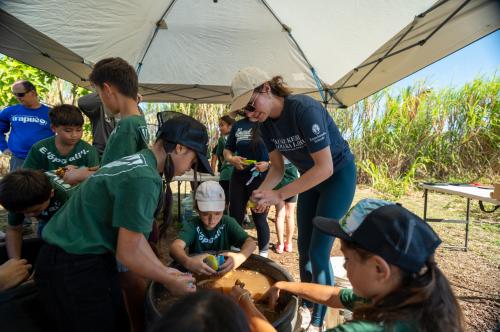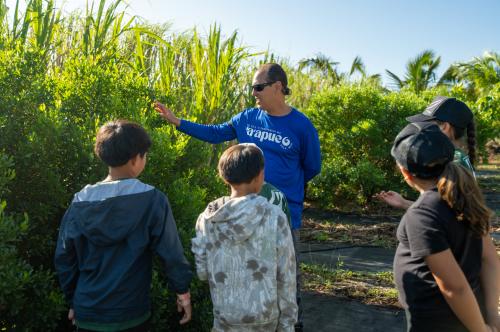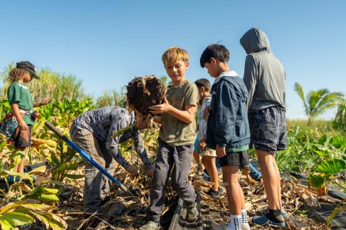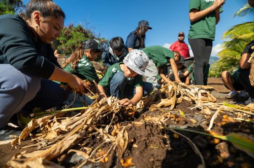 Kamehameha Schools Maui's papa three Kupa ʻĀina Science program haumāna spent the day learning about native plants at the Hoʻōla Lāʻau Lapaʻau Garden with Nohona Health. In the māla, they harvested and cleaned ʻōlena to share with their kaiāulu and connected with KS alumni who joined the huakaʻi.