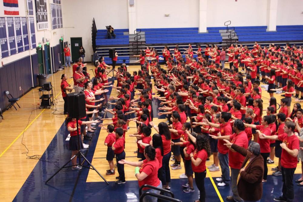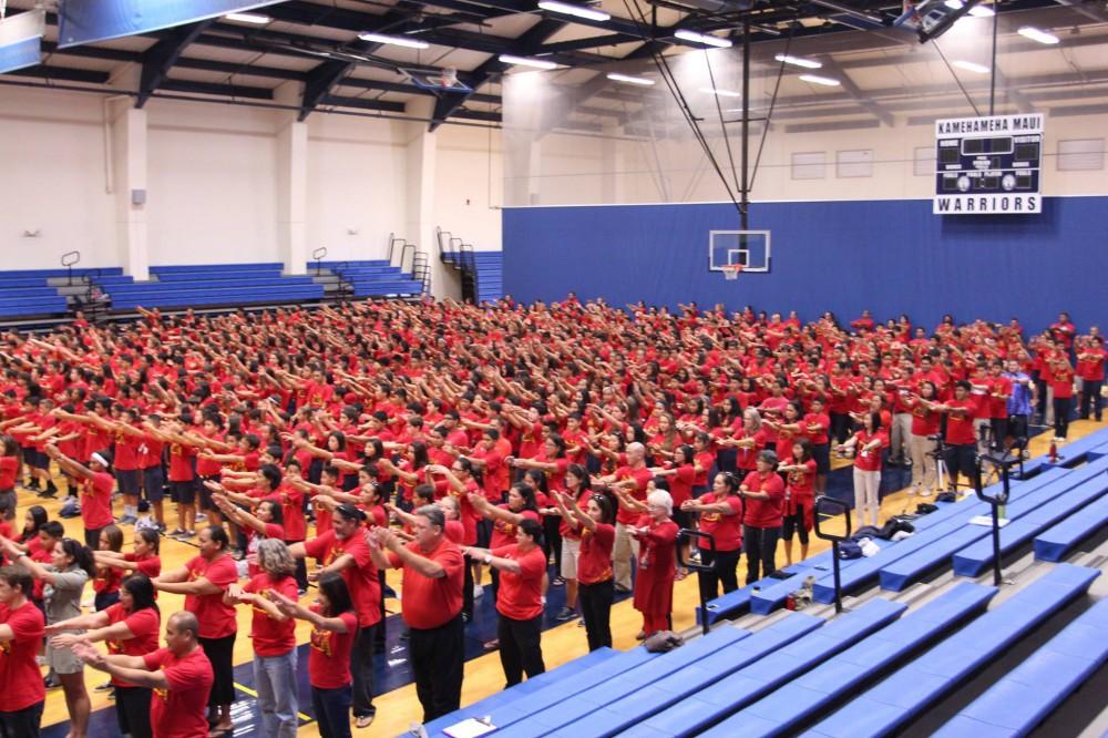 Students, staff, and guest speakers stood together, sang, and performed the hula kuhi lima (hula using only hand motions) of the mele, "Kaulana Nā Pua," also known as "Mele ʻAi Pōhaku." During the day all were treated to a variety of guest speakers who shared a deeper mana'o about this mele. Today and always, we strengthen the kahua, the foundation of our Kula Hawaiʻi.
