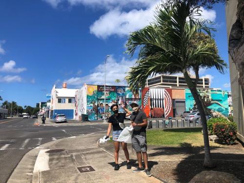 KS staffers were among the 170 community members who dedicated last Saturday to the Mālama ʻĀina Earth Day Community Clean-Up in Our Kaka‘ako. Adults, students and keiki celebrated Earth Day by helping to pick up ʻōpala from the nine-block mauka neighborhood of Our Kakaʻako and Mother Waldron Park. The event was held in partnership with the nonprofit Surfrider Foundation. “We are committed to being responsible stewards of the ʻāina and doing our part to protect it for future generations,” said Serge Krivatsy, Kamehameha Schools Commercial Real Estate director of planning and development. “We are please to partner with the Surfrider Foundation and provide the community with this opportunity to come together and care for our environment in a safe manner.” The day ended with 228 pounds of trash collected. All volunteers received a grab n’ go snack bag and mahalo makana for their participation. Visit ourkakaako.com for more information.