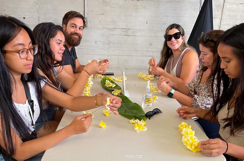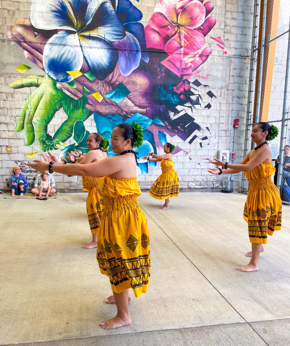 In celebration of May Day, Our Kakaʻako hosted a Lei Day Aloha celebration at The Barn in which attendees, both kamaʻāina and malihini, had the opportunity to enjoy various Hawaiian entertainment and activities. The free event featured live musical and hula performances by Kaniela Nakashima and Halau Hula mai ka Puʻuwai a ka Manaʻo under the guidance of Kumu Hula Pam Divine. A lei making station was available to all, where fresh blossoms were provided to create lei wristlets. Additionally, attendees had the chance to spin the Prize Wheel for a chance to win prizes from SALT at Our Kaka‘ako merchants.
