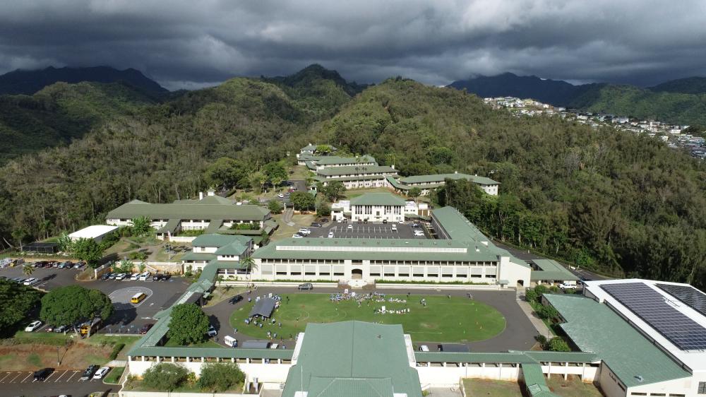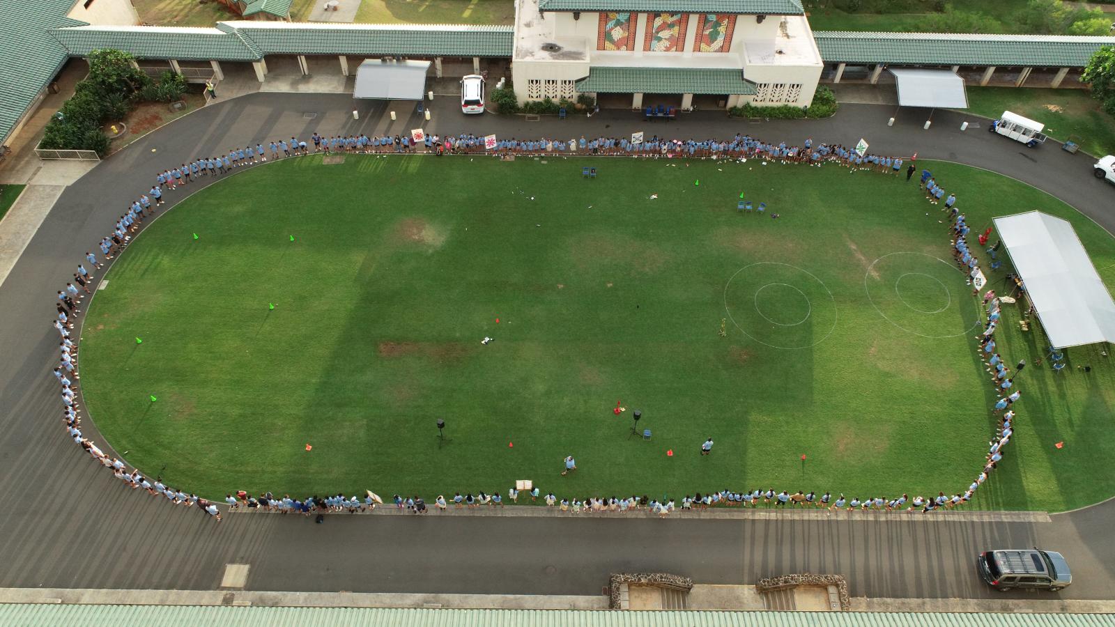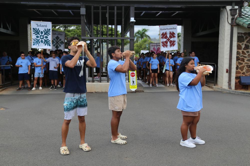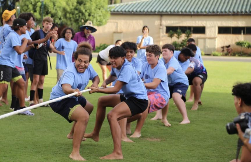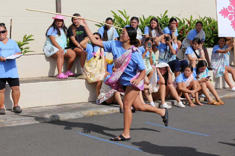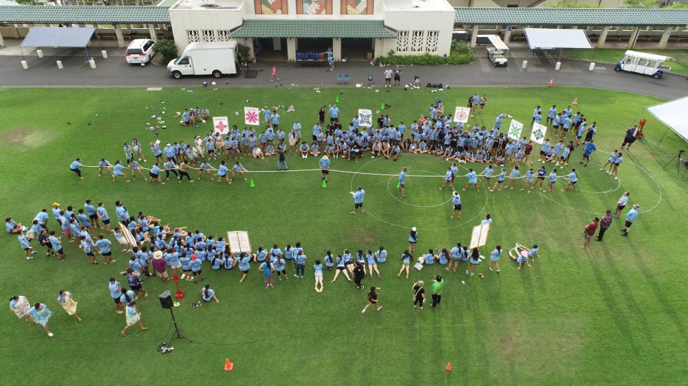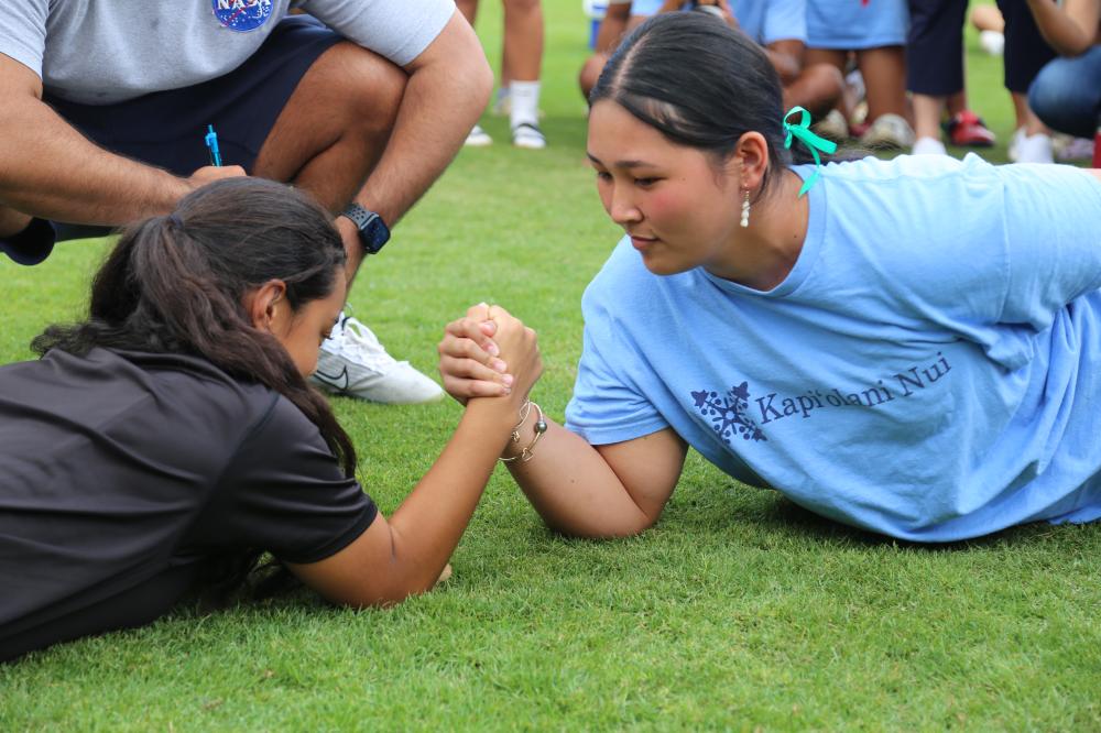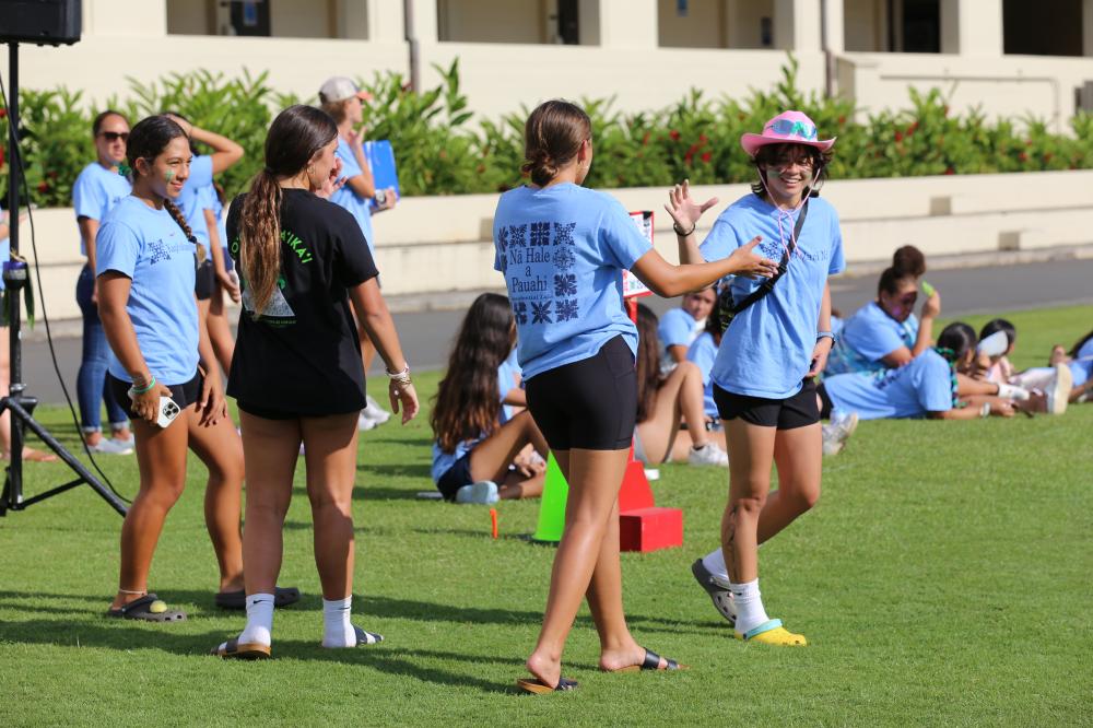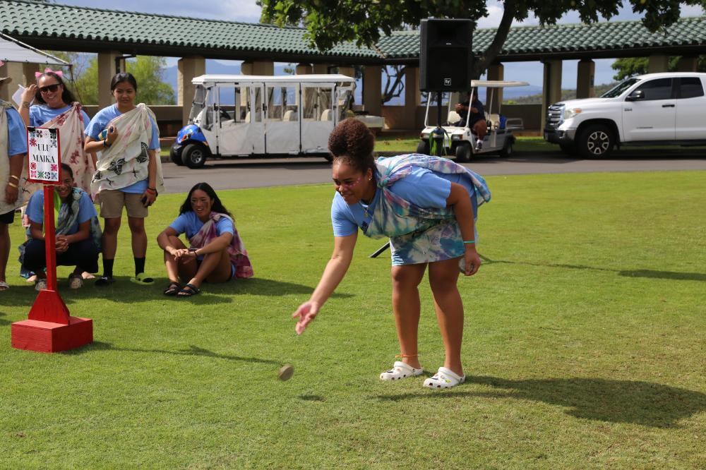 Makahiki season got off to an early start on Oct. 25 at Kōnia Field on the KS Kapālama campus as about 300 haumāna competed in the Makahiki games. Representing their individual hale, middle and high school haumāna competed in various games, including: hoʻokaʻa pōhaku (rock rolling – with a large heavy ball), ihe pāheʻe (spear sliding), ʻulu maika (disc rolling), moa pāheʻe (dart sliding), ʻōʻō ihe (spear throwing), kūkini loa (long distance race), kūkini poko (short distance race), kūkini hui (relay), haka moa (standing chicken fight), uma (arm wrestling) and hukihuki (tug of war).