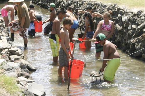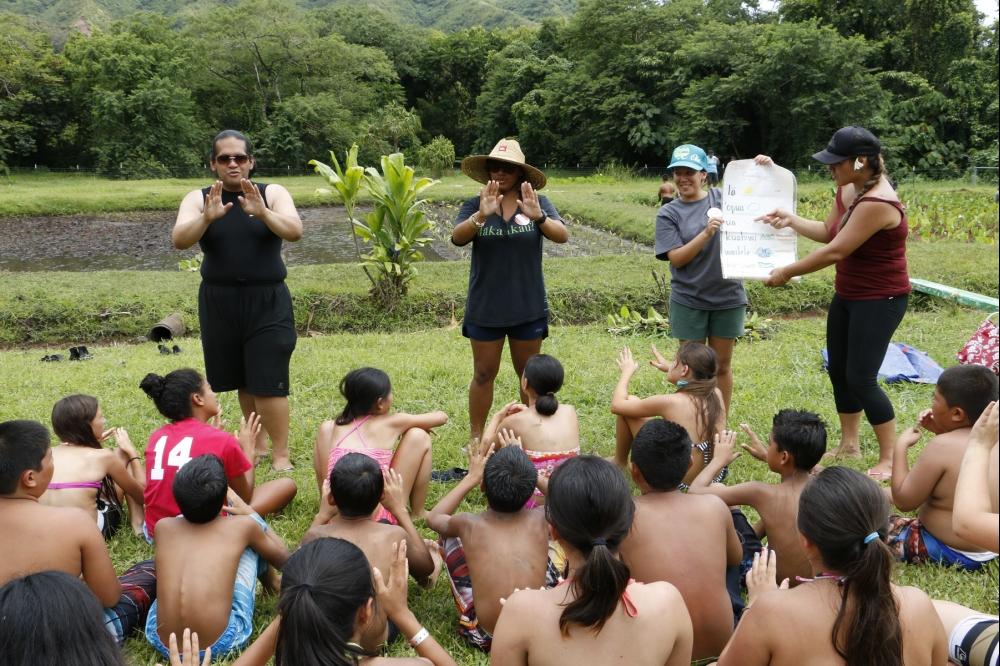 Hoʻomākaʻikaʻi – the oldest and largest of KS’ summer programs – teaches soon-to-be sixth graders about Hawaiian history and culture through hands-on learning. Activities during the one-week boarding program include trips to historic places, working in a loʻi kalo (irrigated taro patch), fishpond restoration, mele, hula and more.