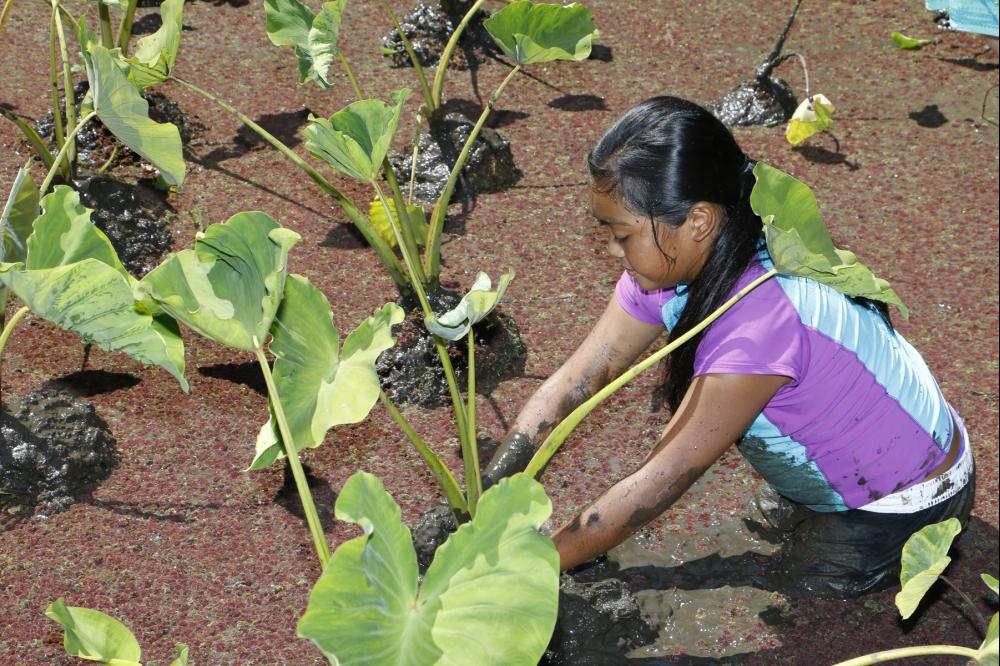 Last week, Hoʻomākaʻikaʻi students traveled to Oʻahu’s North Shore to learn about traditional Hawaiian fish-farming and canoe-paddling, and learned about growing taro in a traditional loʻī in Punaluʻu.