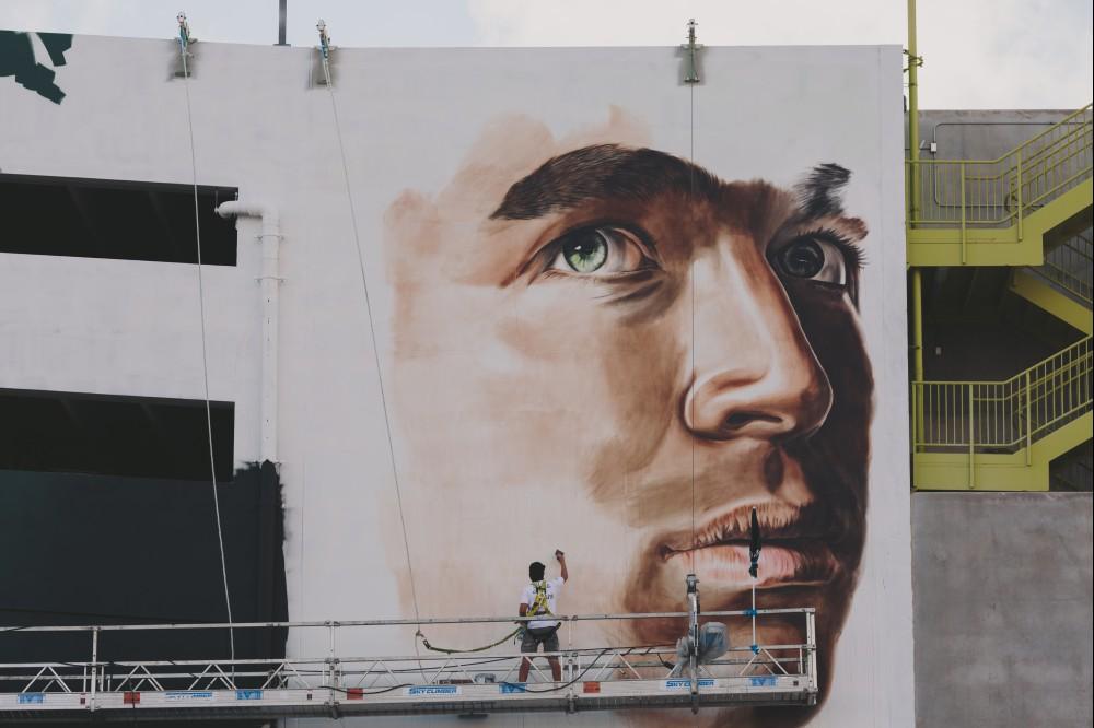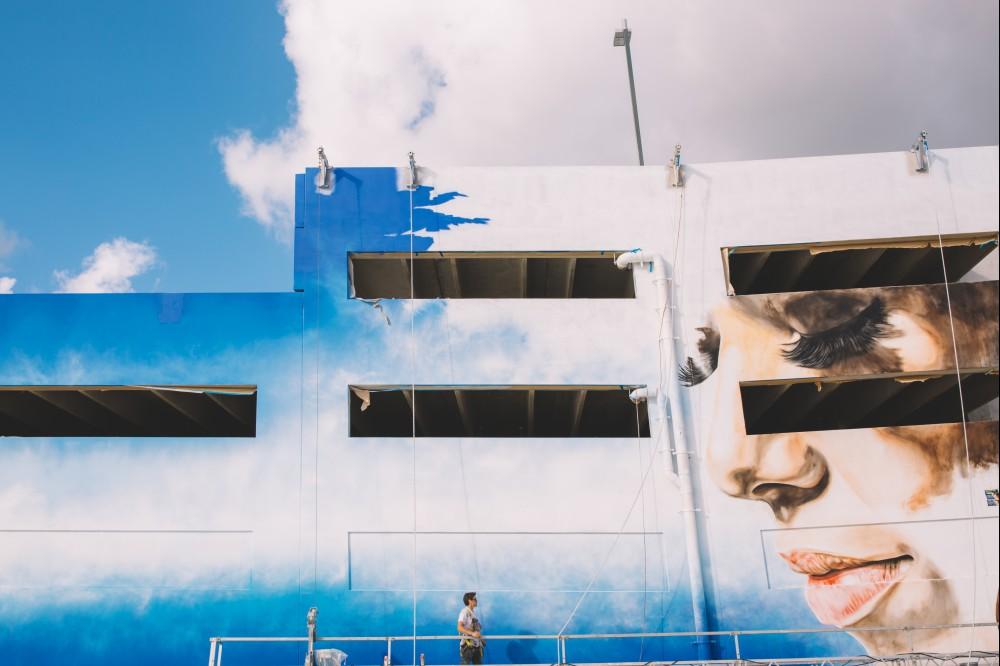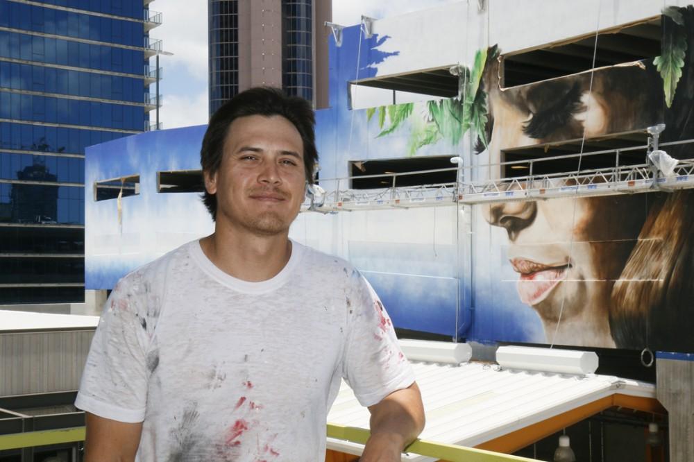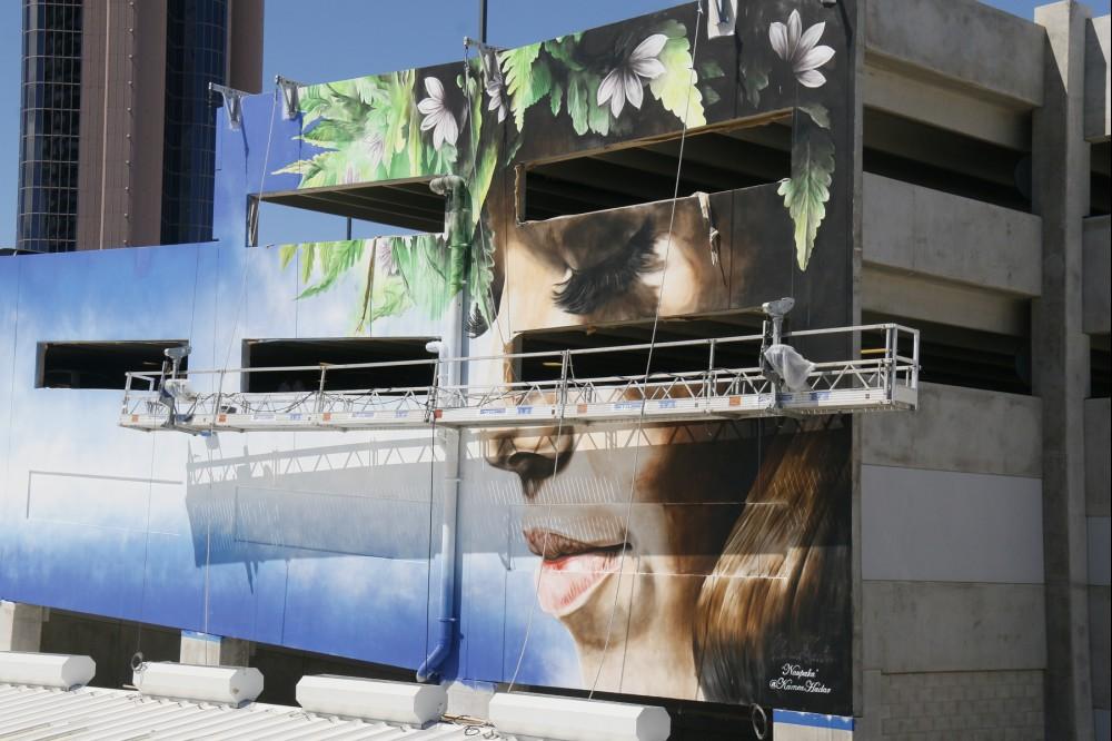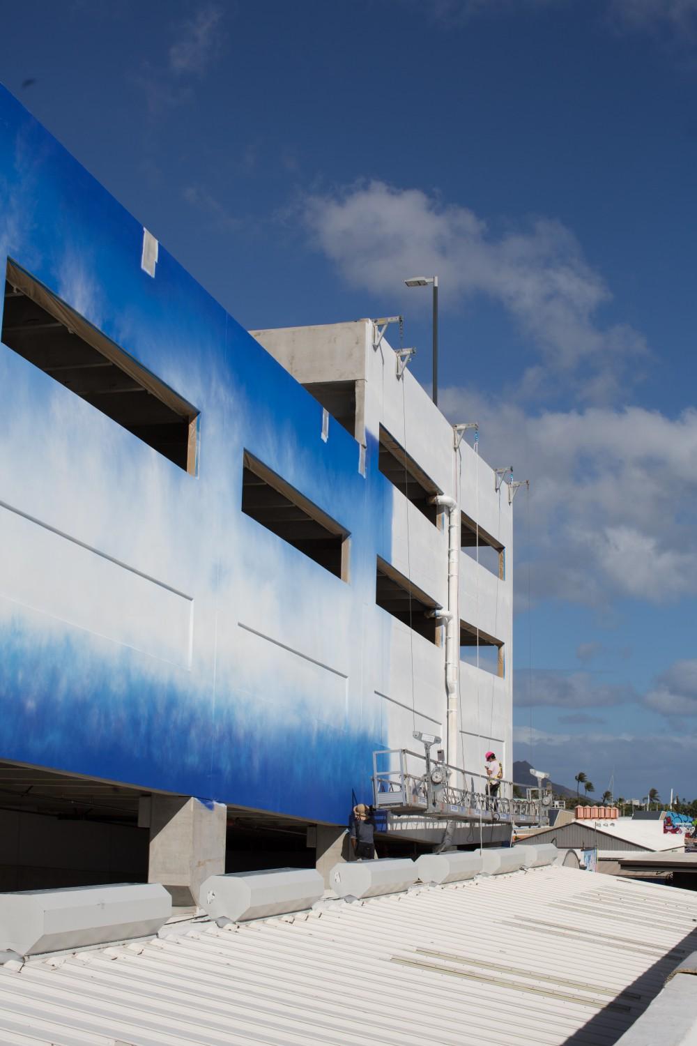 Renowned local street artist Kamea Hadar from POW! WOW! Hawaii has portrayed the Hawaiian legend of the naupaka flower on the parking structure of the Kamehameha Schools retail complex, SALT at Our Kaka‘ako.