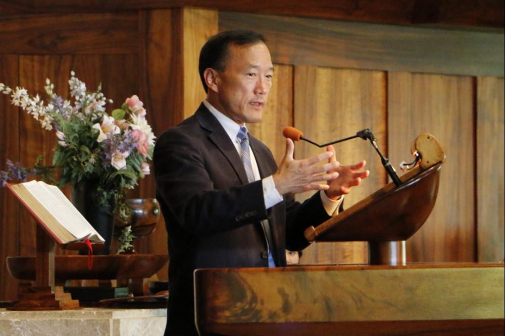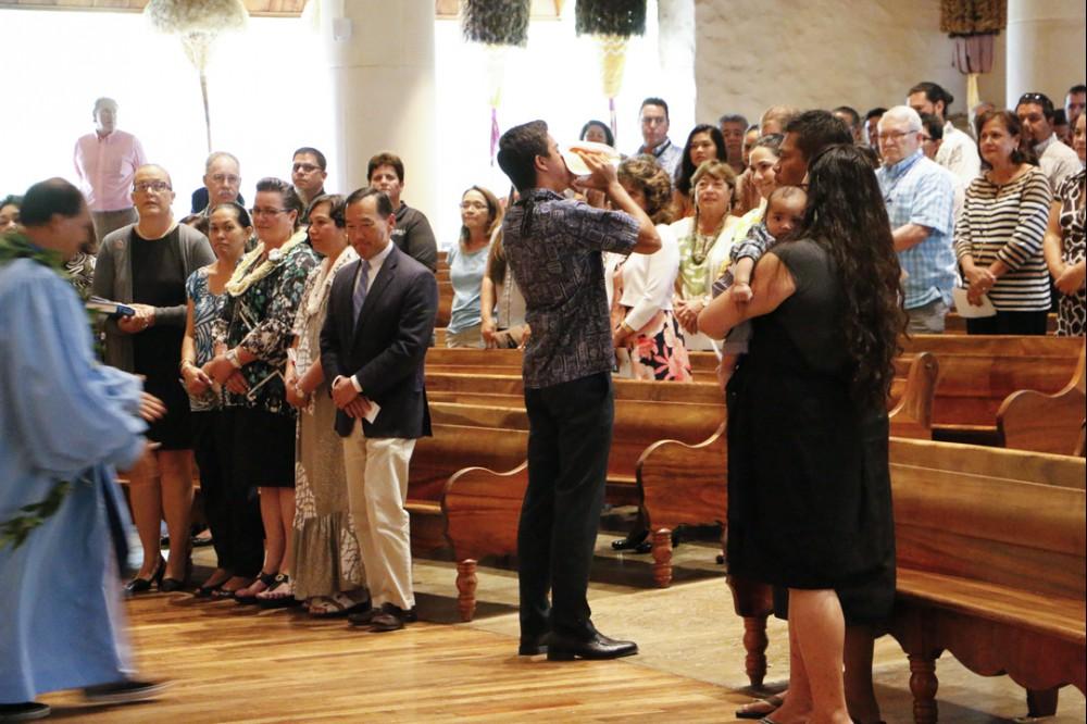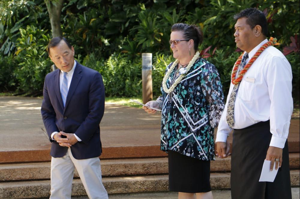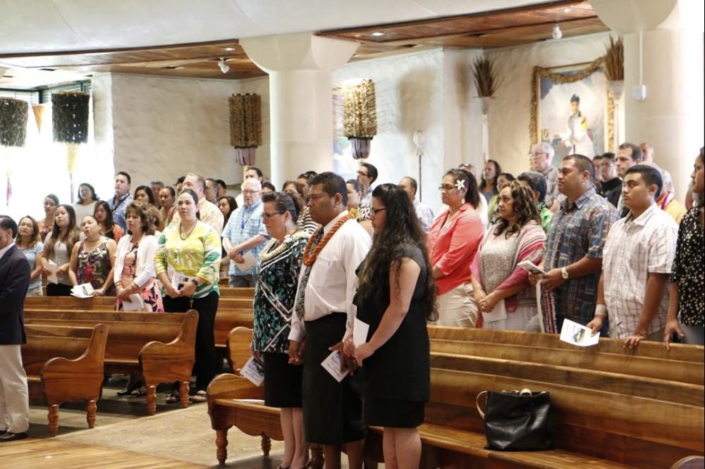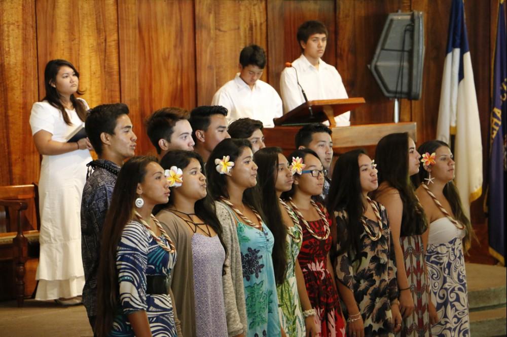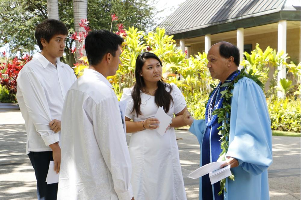 A welcome ceremony and blessing for new KS Kapālama High School Principal Sheena Alaiasa was held at the campus' Bishop Memorial Chapel on June 1. Alaiasa and her family were introduced to the campus staff in the ceremony that featured the presentation of the symbols of Kamehameha Schools: a canoe paddle, a koa bowl and a bible.