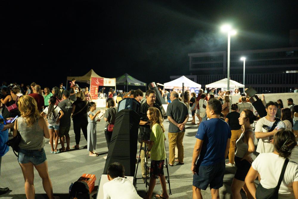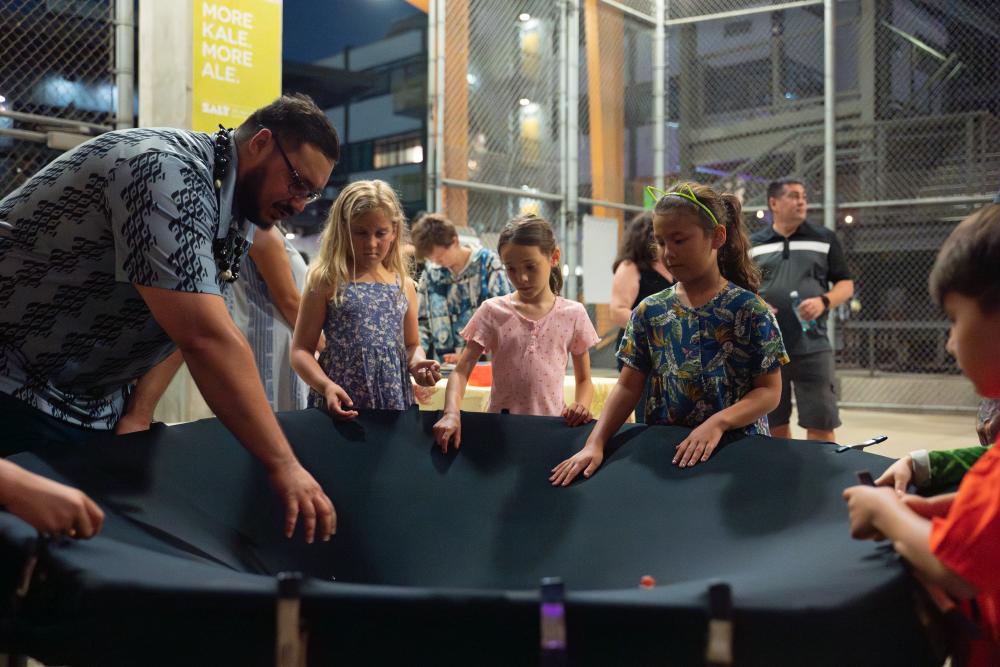 About 500 people attended the October ʻOhana Stargazing event at Our Kakaʻako on ʻĀina Pauahi. The event brought together people of all ages and backgrounds to share in the wonders of the night sky. On the rooftop, guests marveled at the stars through high-quality telescopes and enjoyed goodies from eateries like Middle Eats and Kava Queen. Many got the chance to learn about Hawaiian constellations and listen to esteemed navigators describe their journeys. Inside at The Barn, keiki excitedly built LEGO space shuttles and simulated wayfinding on the Hōkūleʻa through virtual reality goggles.