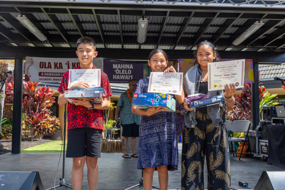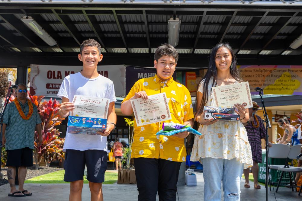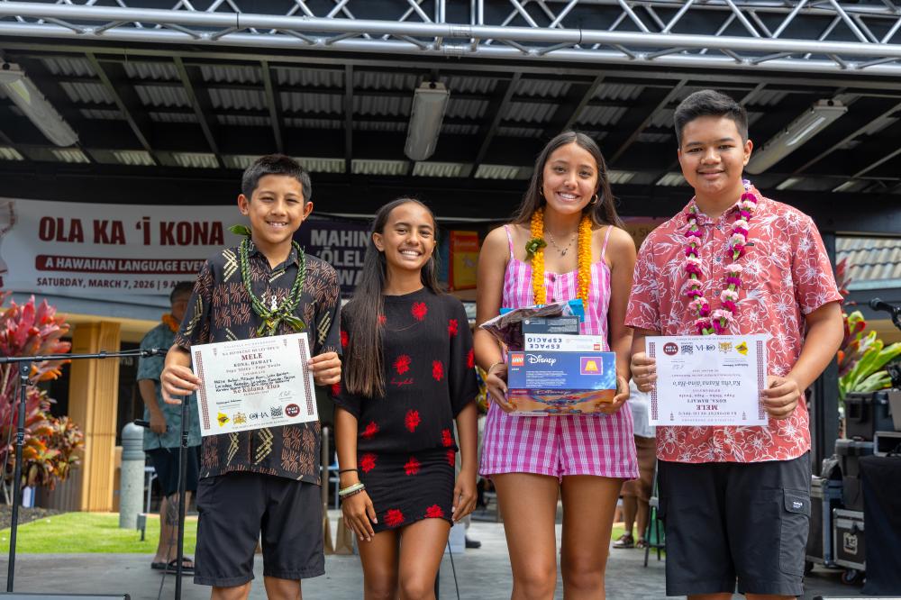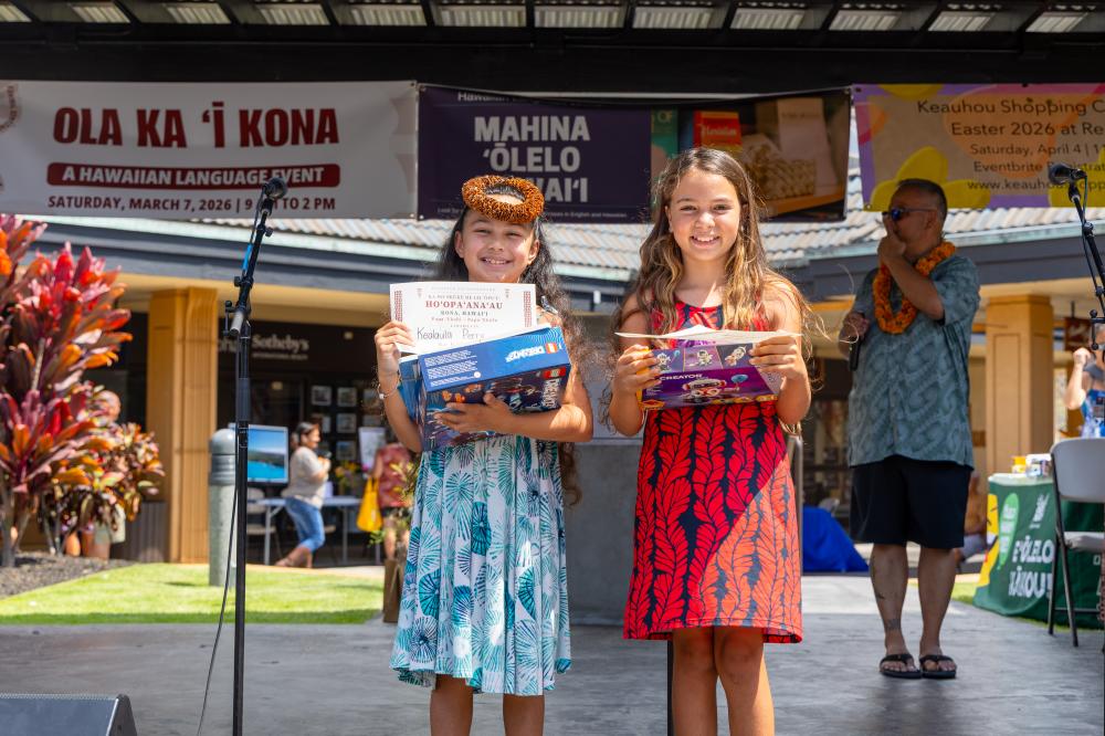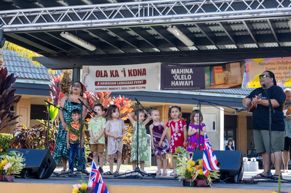 Ola Ka ʻĪ Kona brought haumāna, kumu, ʻohana and community members to Keauhou Shopping Center on March 7 for the finale of the 2026 pae ʻāina-wide Hawaiian language fair. Attendees practiced their ʻōlelo Hawaiʻi through hula, mele, oli, storytelling, hands-on activities and competitions, celebrating and strengthening ʻōiwi identity across generations.
