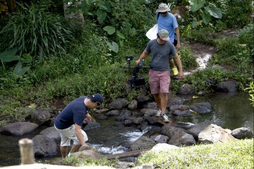 Local ad agency MVNP was hired to shoot the promotional pieces on location in Kāneʻohe and Nuʻuanu. KS alumni served as acting talent for the video vignettes that told stories of how KS books become integral parts of contemporary Hawaiian lives.