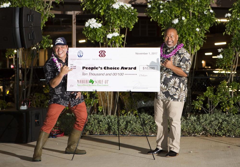 Māla Kalu‘ulu received the $20,000 grand prize for their work in cultivating ‘ulu (breadfruit) and ‘ōlena (turmeric) via principles developed by Hawaiians applied to contemporary agriculture. Kaunāmano Farm won the People’s Choice Award worth $10,000 for its work in using a holistic approach predicated on pasture management and rotational open-air grazing. The People’s Choice Award was determined via a live, real-time vote by event attendees as well as those interacting via social media around the globe.
