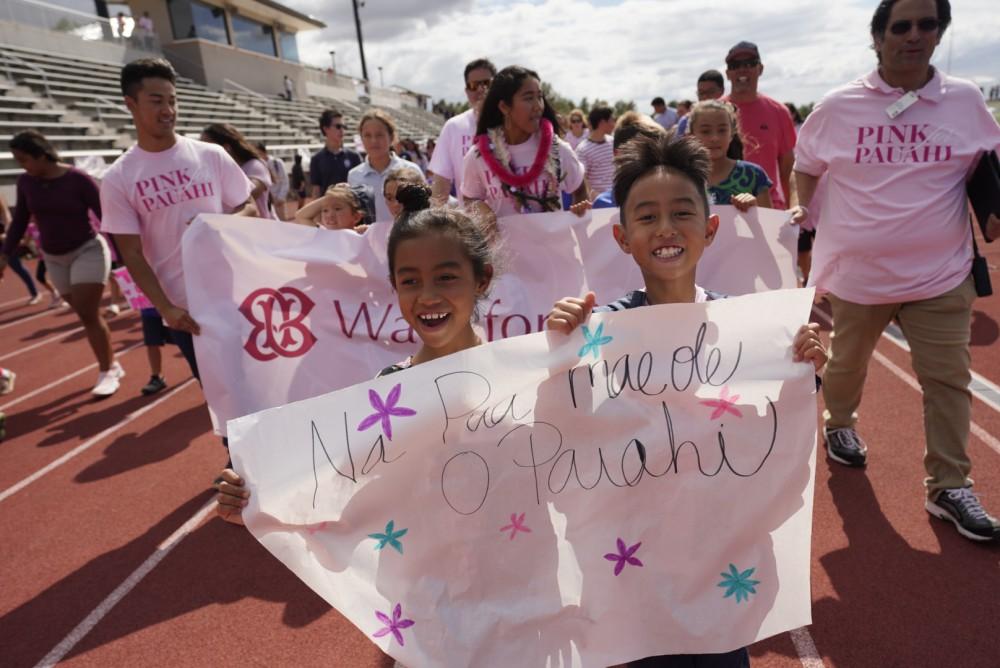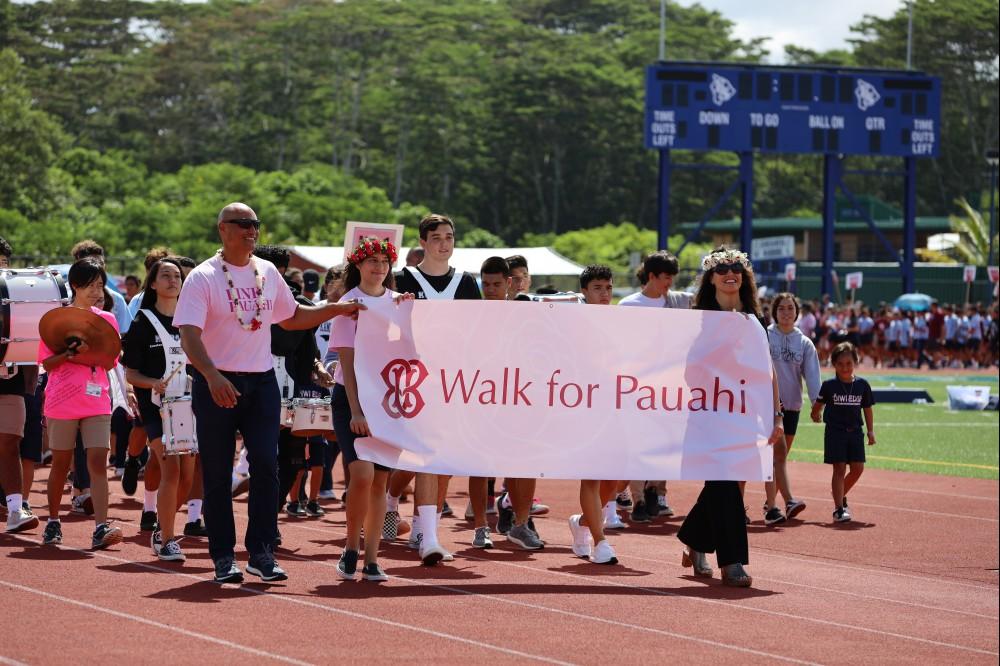 On Friday, October 18, students, teachers, staff and administrators at the three Kamehameha Schools campuses donned pink and honored Pauahi with the first-ever tri-campus “Walk for Pauahi,” and employees and alumni joined in the tribute at preschools, offices and resource centers statewide.