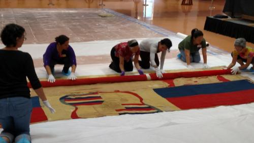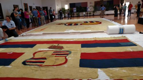 KS Executive Cultural Officer Dr. Randie Fong offered opening remarks, and Adam Jansen, Hawai’i State Archives director described the history of the flags and the pain-staking process of restoration. The haumāna of the KS Kapālama Hawaiian Ensemble under the direction of kumu hula Kaleo Trinidad offered hula that recounted the pomp of King Kalākaua and lamented the darkest days in Hawaiian history.