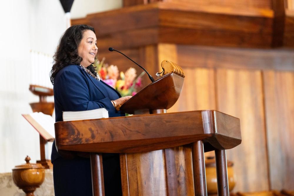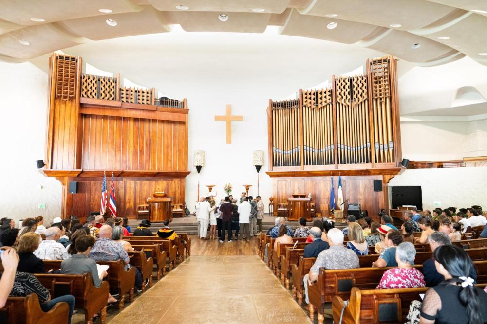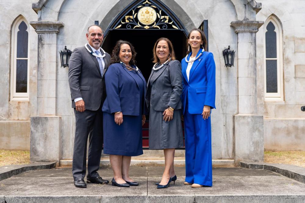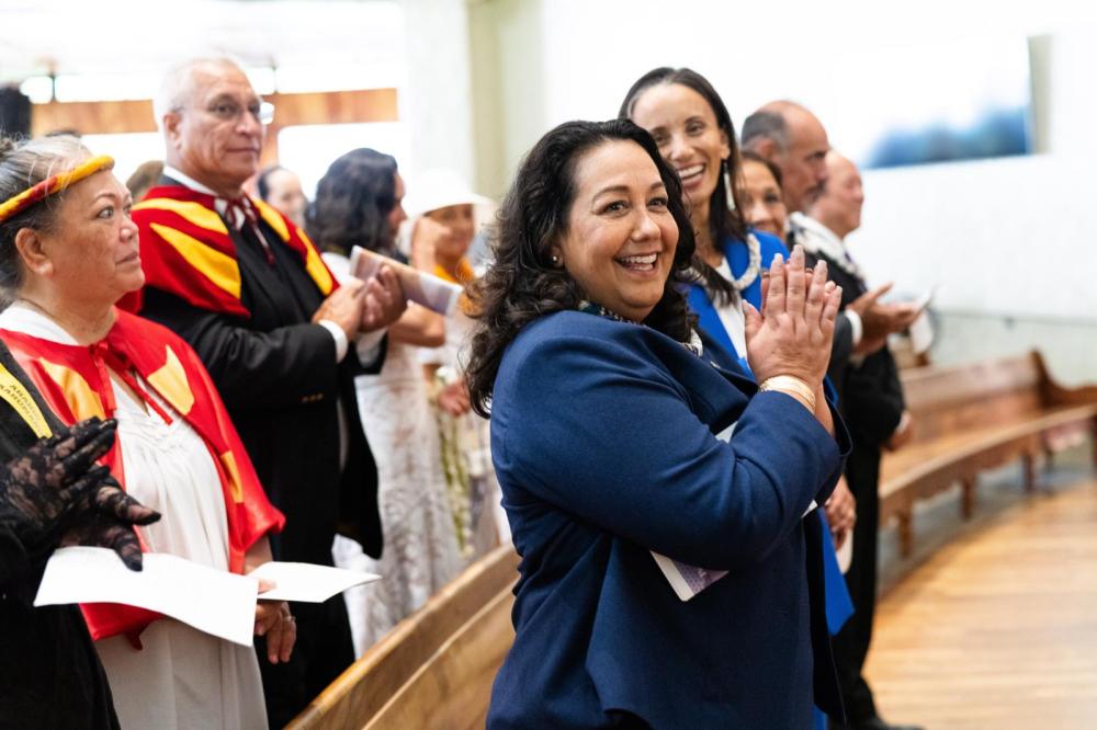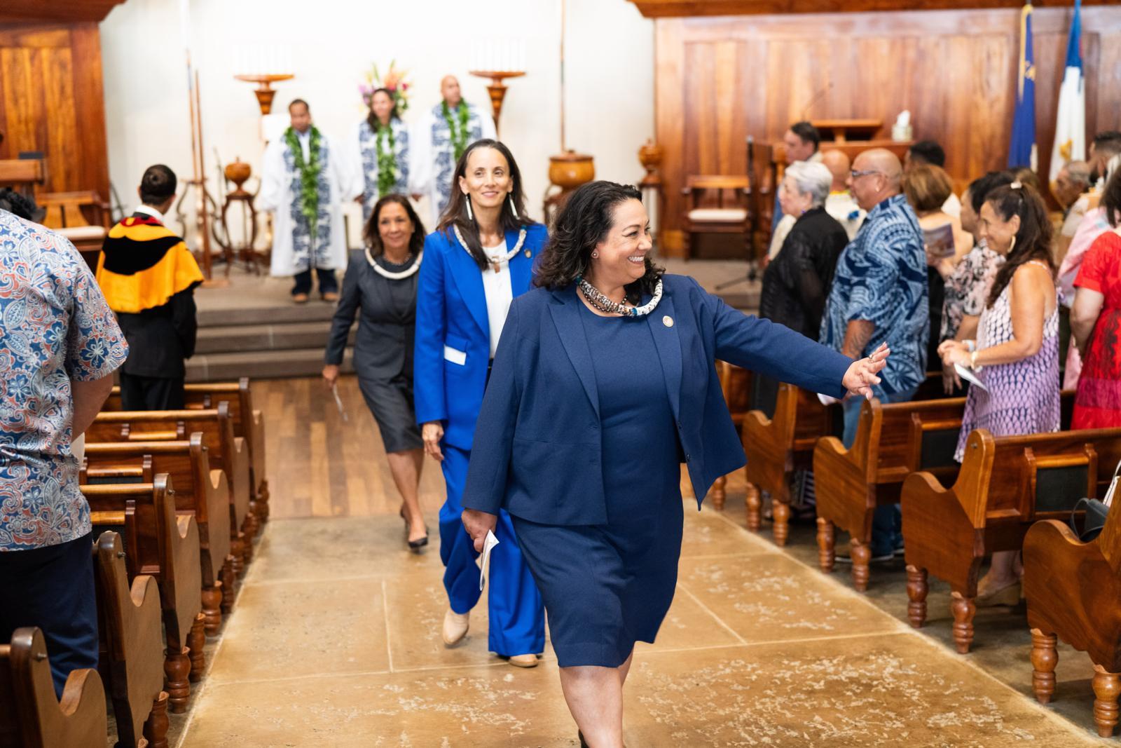 Kamehameha Schools honored newly appointed trustee Michelle Kaʻuhane at a recent investiture ceremony at Bishop Memorial Chapel at the Kapālama campus. Kaʻuhane was selected by the State Probate Court to replace former trustee Lance Keawe Wilhelm and began her term on July 1, 2023.