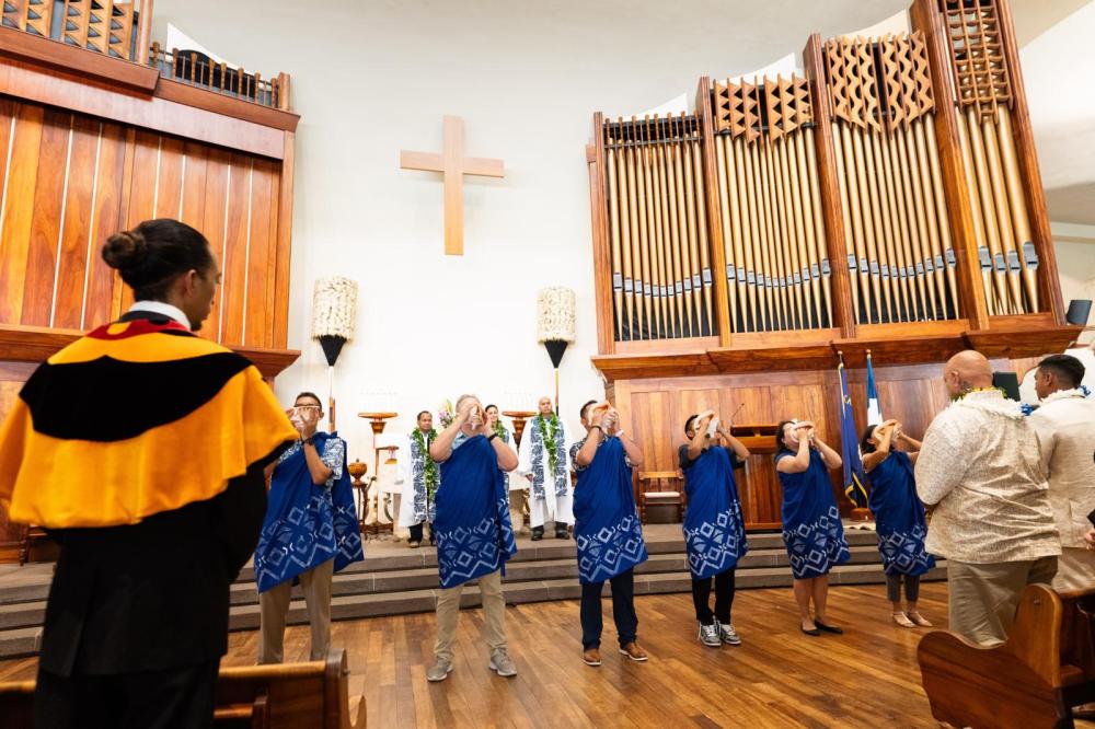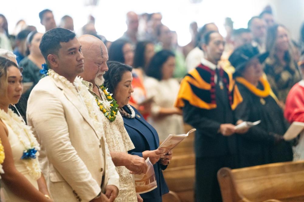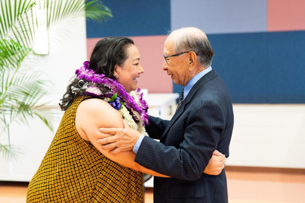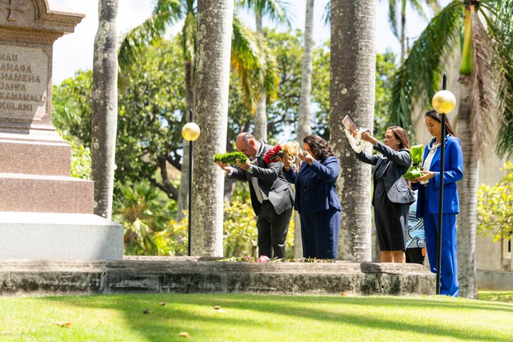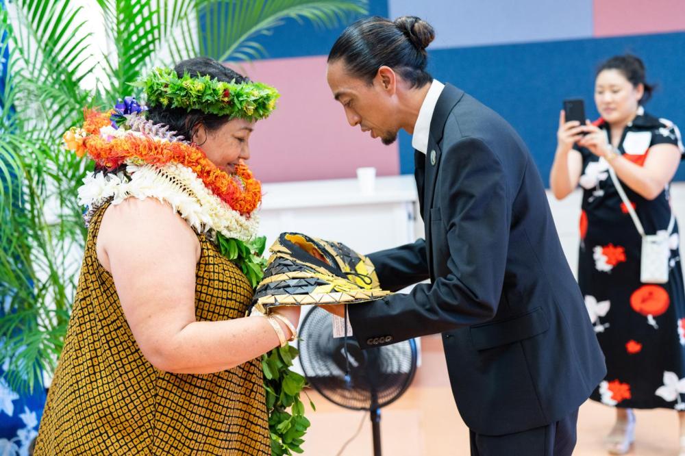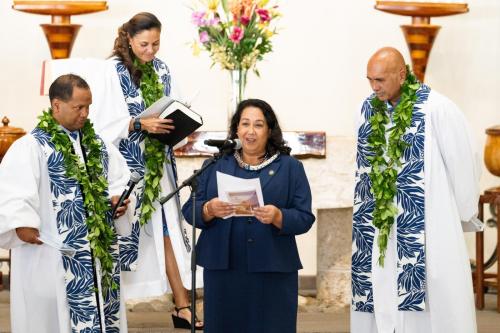 Kamehameha Schools honored newly appointed trustee Michelle Kaʻuhane at a recent investiture ceremony at Bishop Memorial Chapel at the Kapālama campus. Kaʻuhane was selected by the State Probate Court to replace former trustee Lance Keawe Wilhelm and began her term on July 1, 2023.
