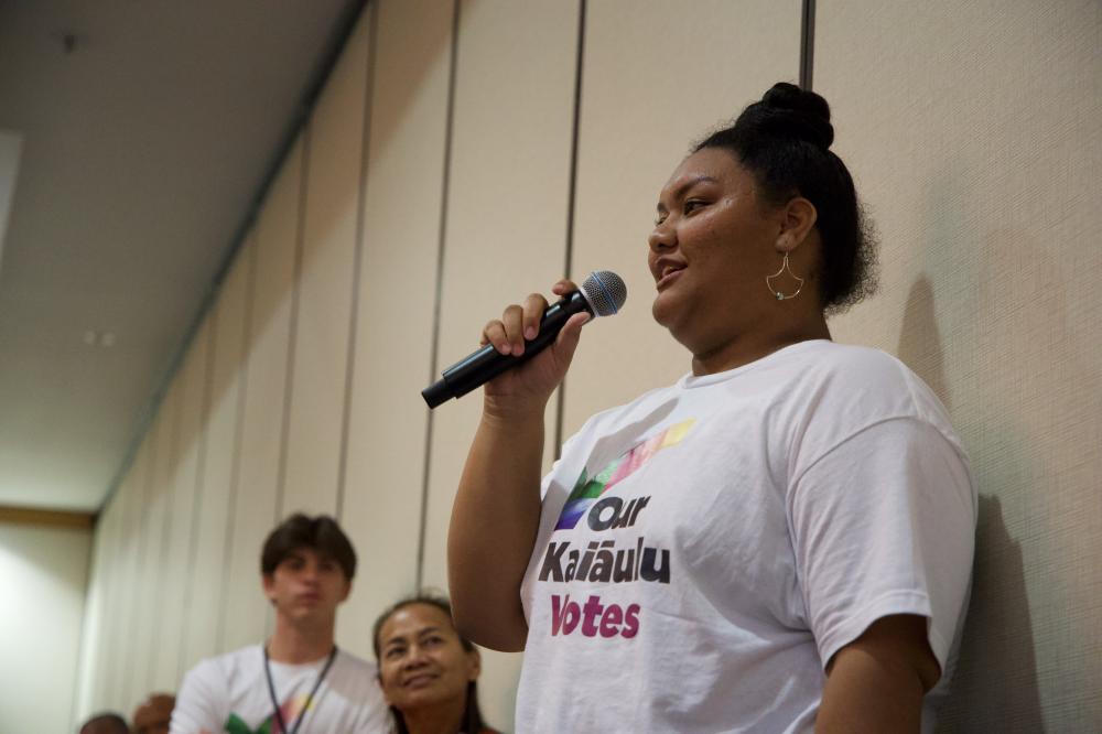 Youth leaders captivated conference goers at the 2024 Native Hawaiian Convention. Students from across Hawaiʻi pae ʻāina, including those from Kamehameha Schools, shared powerful insights at the Our Kaiāulu Votes: ʻŌpio Up Late panel highlighting civic engagement. Their passion and vision for the future was inspiring for all!