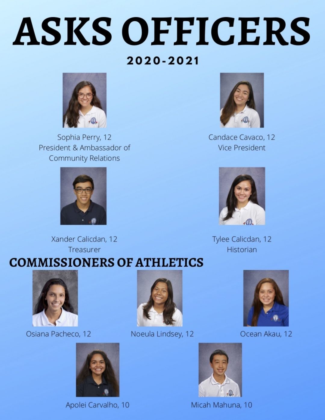 Announcing the 2020-2021 Associated Students of Kamehameha Schools (ASKS) Executive Board and Commissioners.